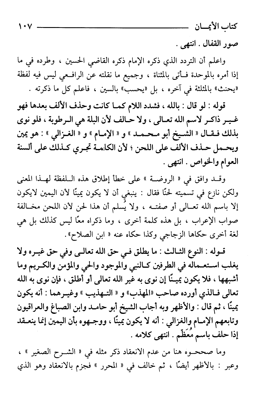 وقد وافق في "الروضة" على خطأ إطلاق هذه اللفظة لهذا المعنى ولكن نازع في تسميته لحنًا فقال: ينبغي أن لا يكون يمينًا لأن اليمين لا يكون إلا باسم الله تعالى أو صفته، ولا يُسلم أن هذا لحن لأن اللحن مخالفة صواب الإعراب، بل هذه كلمة أخرى، وما ذكراه معًا ليس كذلك بل هي لغة أخرى حكاها الزجاجي وكذا حكاه عنه "ابن الصلاح".