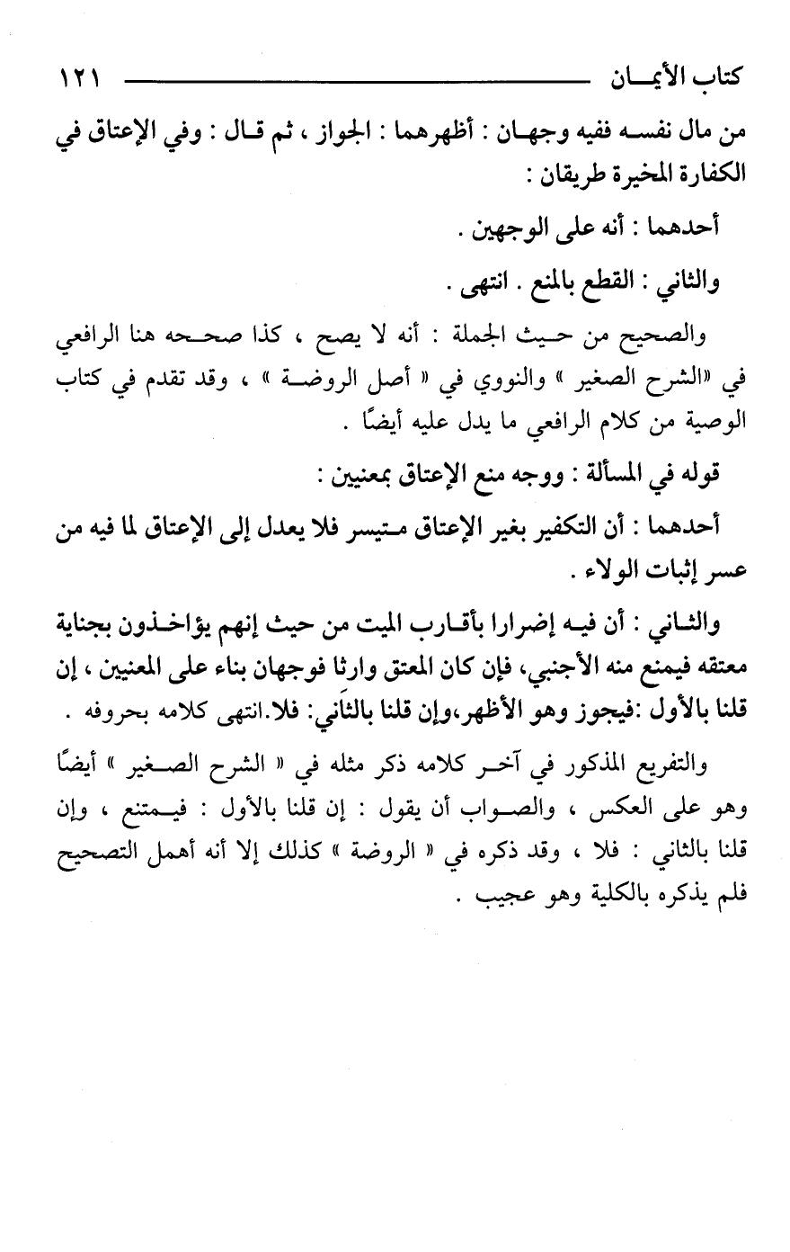من مال نفسه ففيه وجهان: أظهرهما: الجواز، ثم قال: وفي الإعتاق في الكفارة المخيرة طريقان: