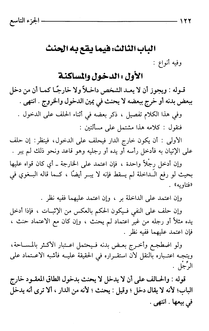 الأولى: أن يكون خارج الدار فيحلف على الدخول، فينظر: إن حلف على الإتيان به فأدخل رأسه أو يده أو رجليه وهو قاعد ونحو ذلك لم يبر.