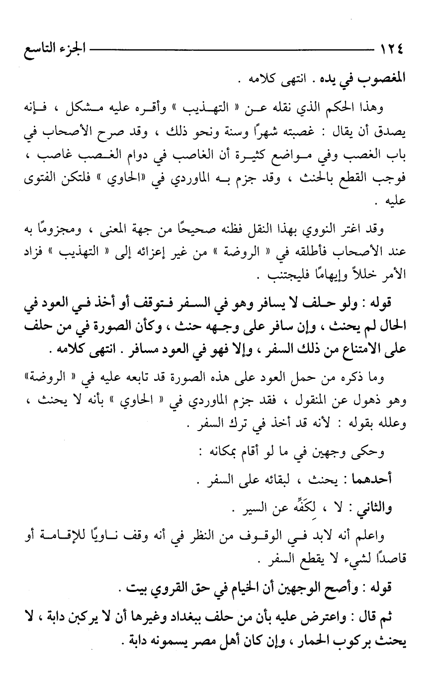 وما ذكره من حمل العود على هذه الصورة قد تابعه عليه في "الروضة" وهو ذهول عن المنقول، فقد جزم الماوردي في "الحاوي" بأنه لا يحنث، وعلله بقوله: لأنه قد أخذ في ترك السفر.