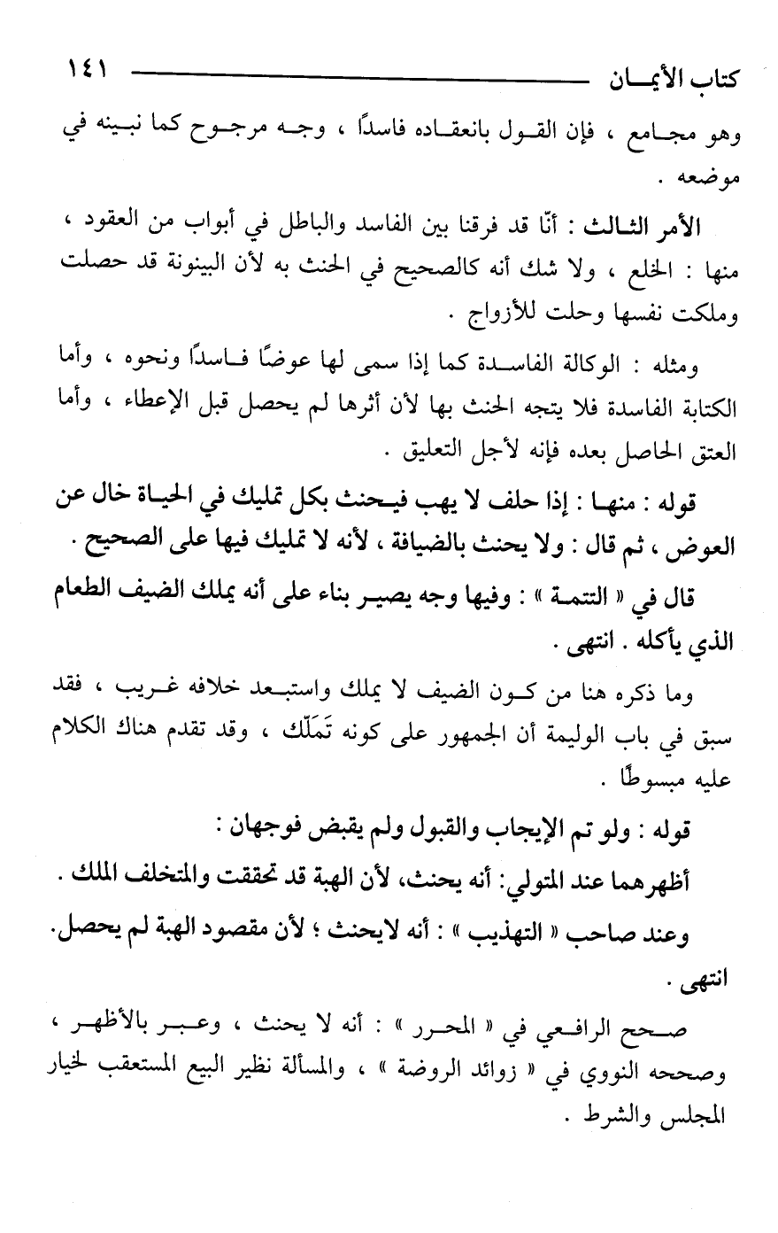 الأمر الثالث: أنّا قد فرقنا بين الفاسد والباطل في أبواب من العقود، منها: الخلع، ولا شك أنه كالصحيح في الحنث له لأن البينونة قد حصلت وملكت نفسها وحلت للأزواج.