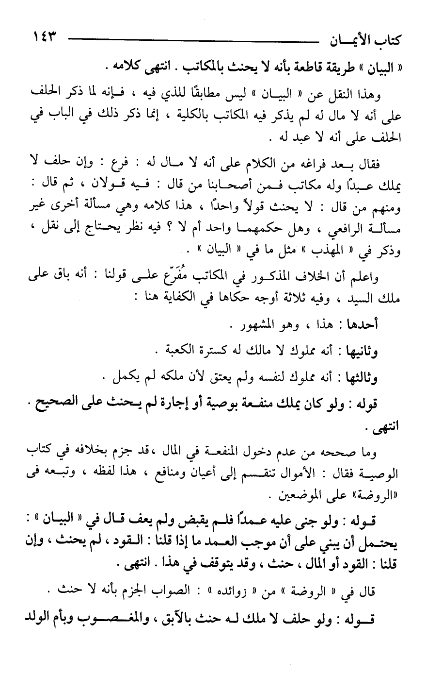 "البيان" طريقة قاطعة بأنه لا يحنث بالمكاتب. انتهى كلامه.