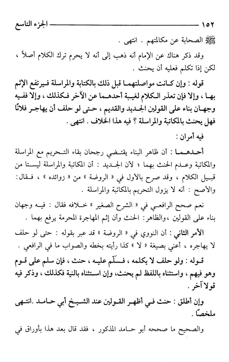 قوله: وإن كانت مواصلتهما قبل ذلك بالكتابة والمراسلة فيرتفع الإثم بها، وإلا فإن تعذر الكلام لغيبة أحدهما عن الآخر فكذلك، وإلا ففيه وجهان بناء على القولين الجديد والقديم، حتى لو حلف أن يهاجر فلانًا فهل يحنث بالمكاتبة والمراسلة؟ فيه هذا الخلاف. انتهى.
