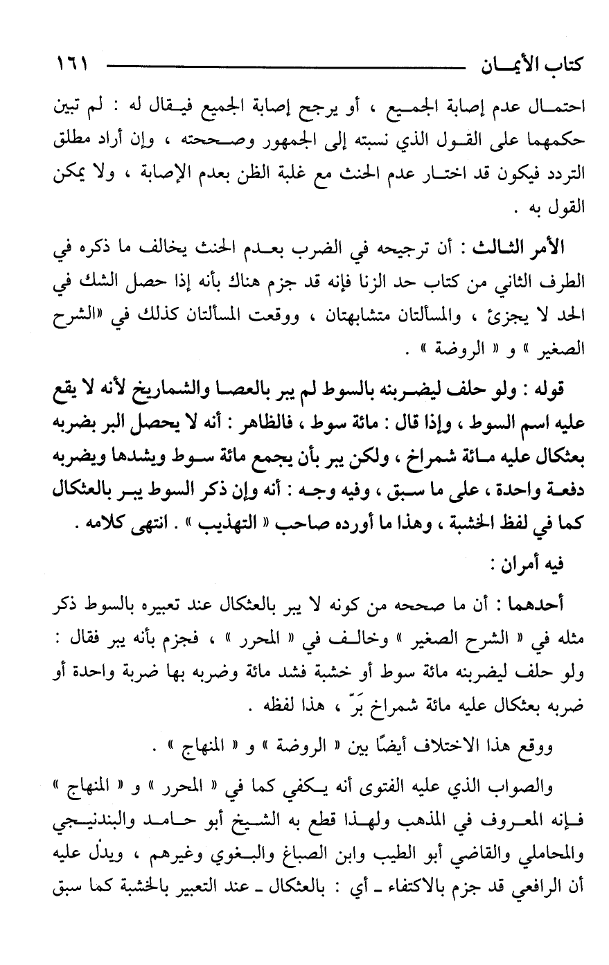 الأمر الثالث: أن ترجيحه في الضرب بعدم الحنث يخالف ما ذكره في الطرف الثاني من كتاب حد الزنا فإنه قد جزم هناك بأنه إذا حصل الشك في الحد لا يجزئ، والمسألتان متشابهتان، ووقعت المسألتان كذلك في "الشرح الصغير" و"الروضة".