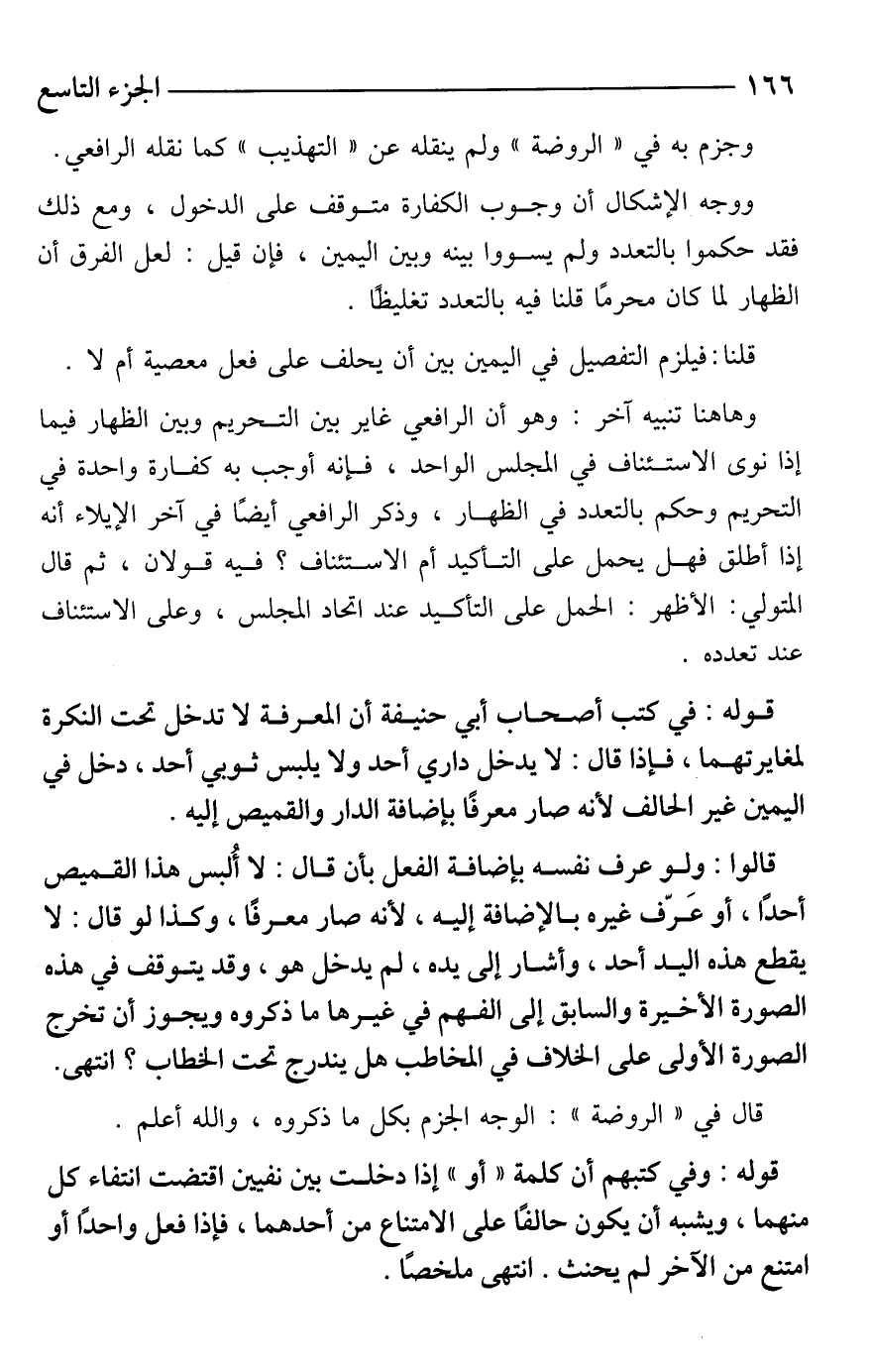 قوله: وفي كتبهم أن كلمة "أو" إذا دخلت بين نفيين اقتضت انتفاء كل منهما، ويشبه أن يكون حالفًا على الامتناع من أحدهما، فإذا فعل واحدًا أو امتنع من الآخر لم يحنث. انتهى ملخصًا.