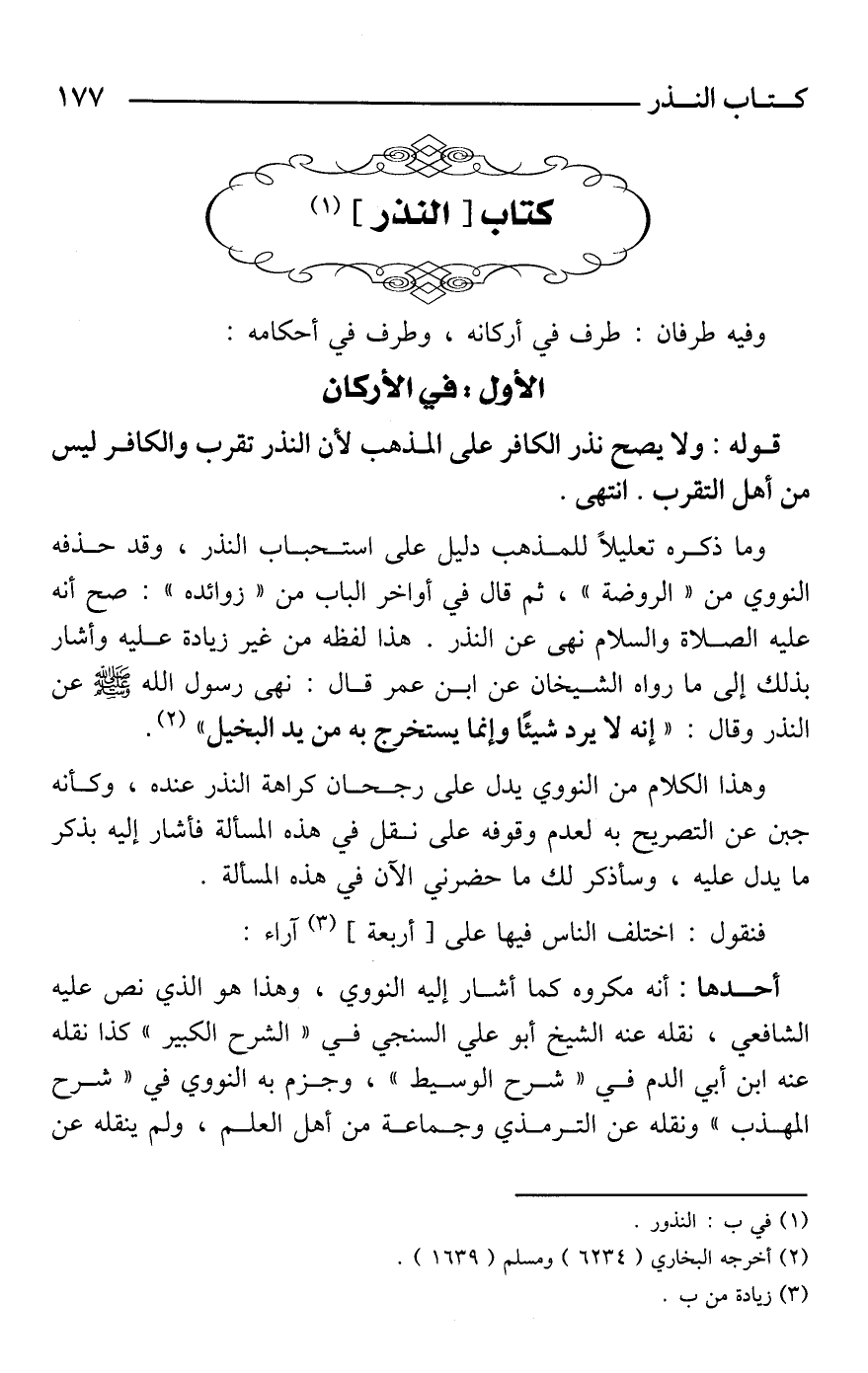 وهذا الكلام من النووي يدل على رجحان كراهة النذر عنده، وكأنه جبن عن التصريح به لعدم وقوفه على نقل في هذه المسألة فأشار إليه بذكر ما يدل عليه، وسأذكر لك ما حضرني الآن في هذه المسألة.