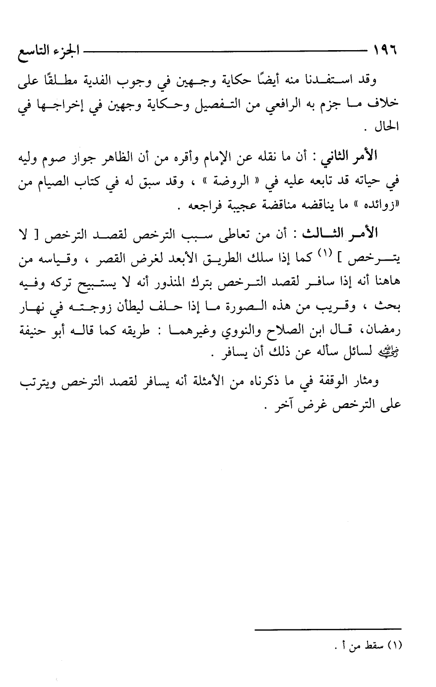 ومثار الوقفة في ما ذكرناه من الأمثلة أنه يسافر لقصد الترخص ويترتب على الترخص غرض آخر.