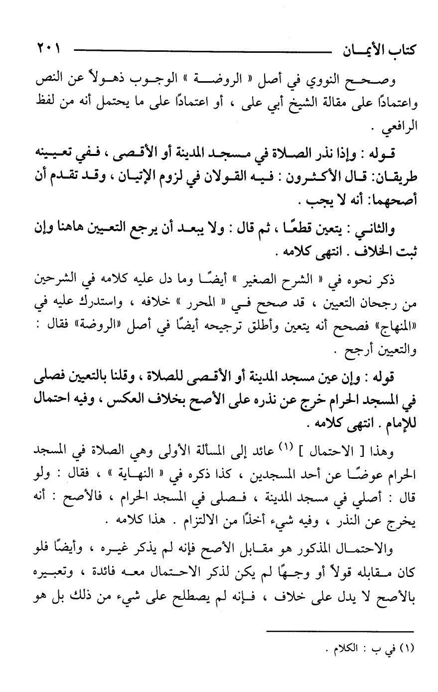 قوله: وإذا نذر الصلاة في مسجد المدينة أو الأقصى، ففي تعيينه طريقان: قال الأكثرون: فيه القولان في لزوم الإتيان، وقد تقدم أن أصحهما: أنه لا يجب.