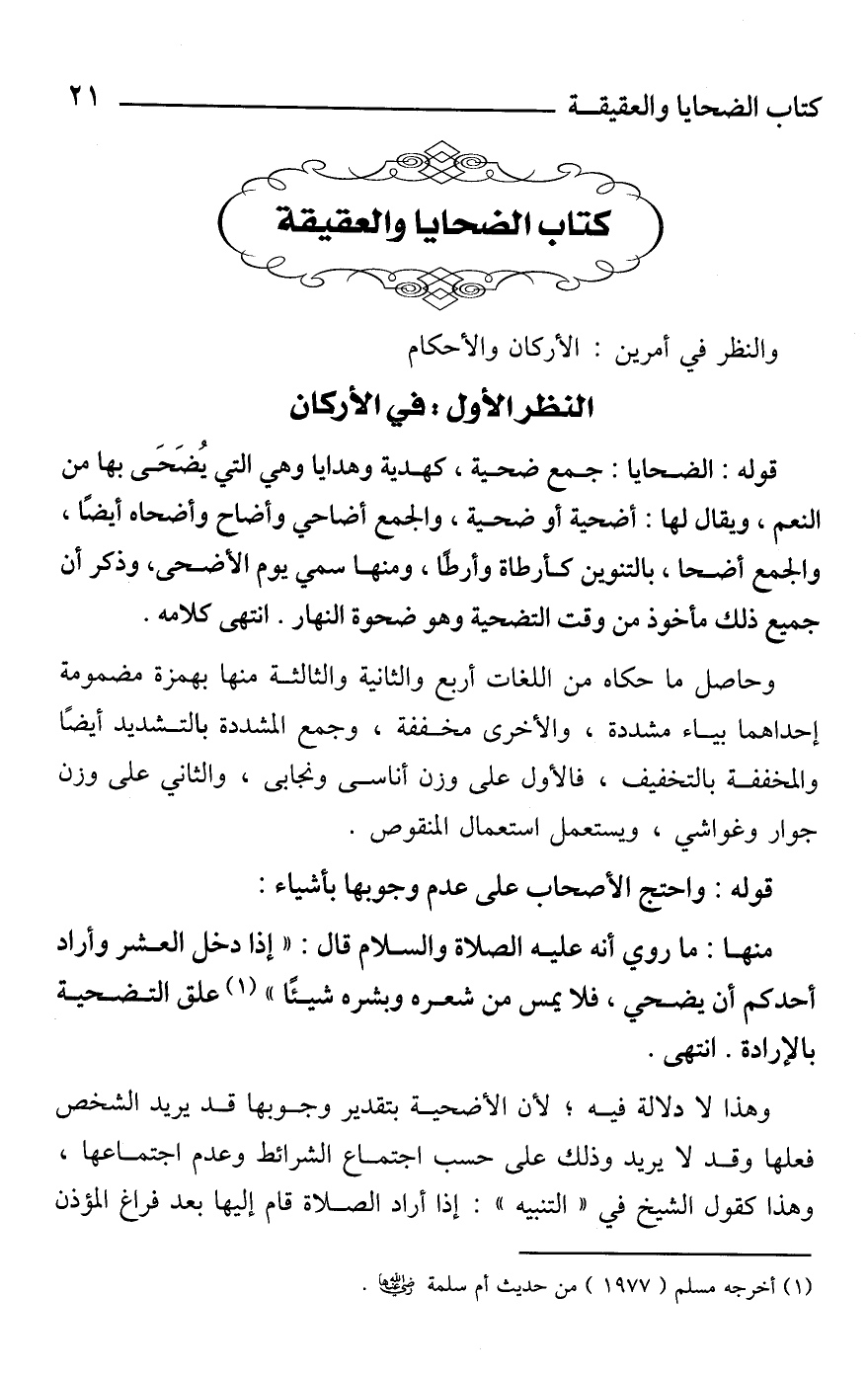 قوله: الضحايا: جمع ضحية، كهدية وهدايا وهي التي يُضَحَى بها من النعم، ويقال لها: أضحية أو ضحية، والجمع أضاحي وأضاح وأضحاه أيضًا، والجمع أضحا، بالتنوين كأرطاة وأرطًا، ومنها سمي يوم الأضحى، وذكر أن جميع ذلك مأخوذ من وقت التضحية وهو ضحوة النهار. انتهى كلامه.
