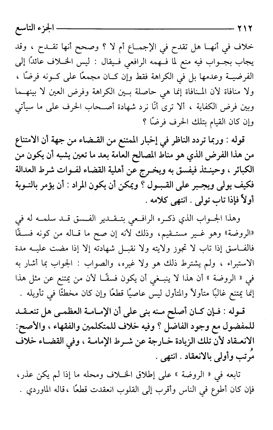 خلاف في أنها هل تقدح في الإجماع أم لا؟ وصحح أنها تقدح، وقد يجاب بجواب فيه منع لما فهمه الرافعي فيقال: ليس الخلاف عائدًا إلى الفرضية وعدمها بل في الكراهة فقط وإن كان مجمعًا على كونه فرضًا، ولا منافاة لأن المنافاة إنما هي حاصلة بين الكراهة وفرض العين لا بينهما وبين فرض الكفاية، ألا ترى أنّا نرد شهادة أصحاب الحرف على ما سيأتي وإن كان القيام بتلك الحرف فرضًا؟