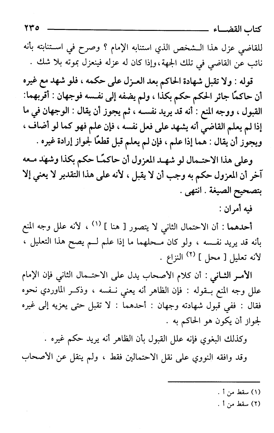 وعلى هذا الاحتمال لو شهد المعزول أن حاكمًا حكم بكذا وشهد معه آخر أن المعزول حكم به وجب أن لا يقبل، لأنه على هذا التقدير لا يعني إلا بتصحيح الصيغة. انتهى.