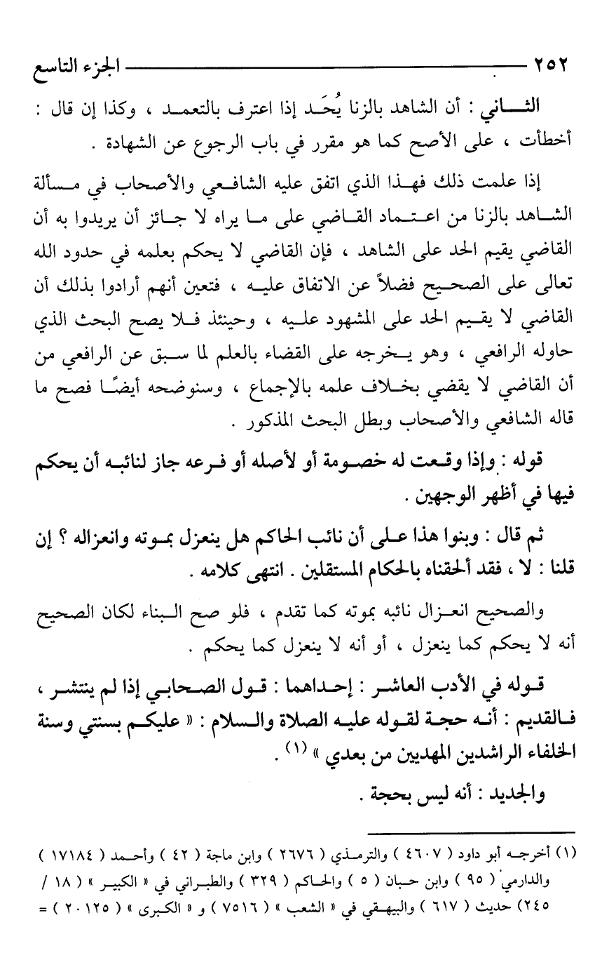 قوله في الأدب العاشر: إحداهما: قول الصحابي إذا لم ينتشر، فالقديم: أنه حجة لقوله -عليه الصلاة والسلام-: "عليكم بسنتي وسنة الخلفاء الراشدين المهديين من بعدي" (¬1).