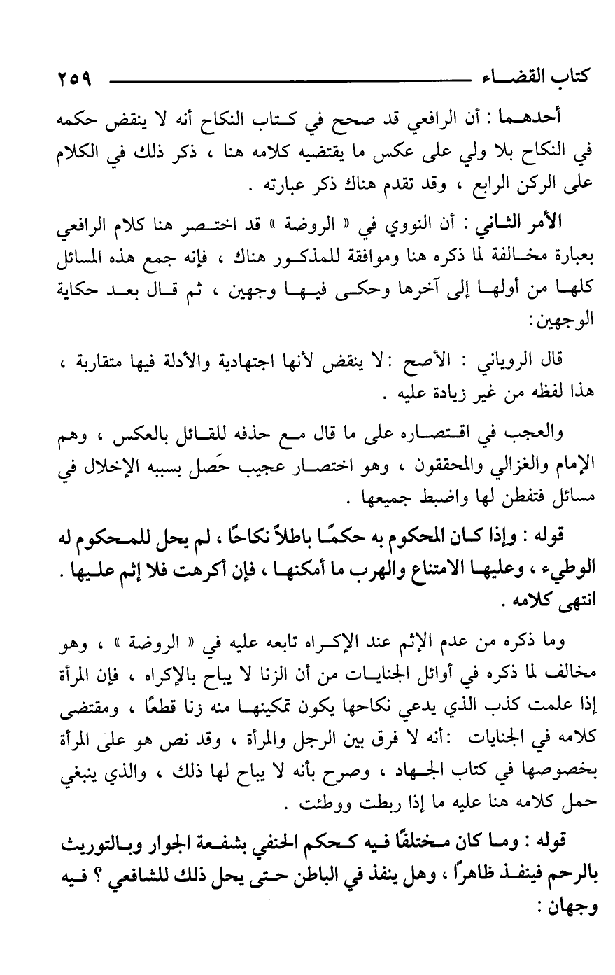 أحدهما: أن الرافعي قد صحح في كتاب النكاح أنه لا ينقض حكمه في النكاح بلا ولي على عكس ما يقتضيه كلامه هنا، ذكر ذلك في الكلام على الركن الرابع، وقد تقدم هناك ذكر عبارته.