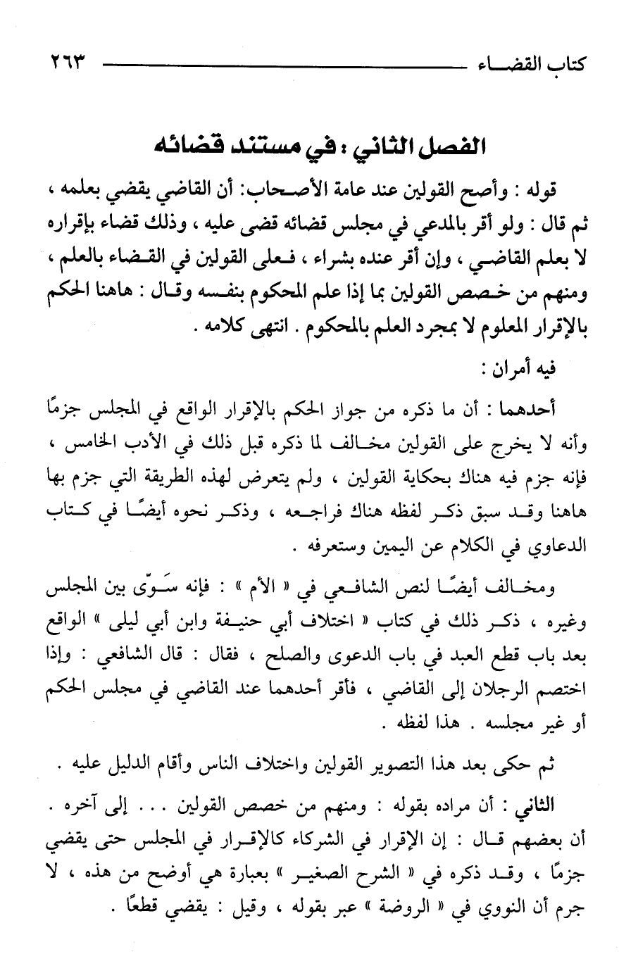 الفصل الثاني: في مستند قضائه