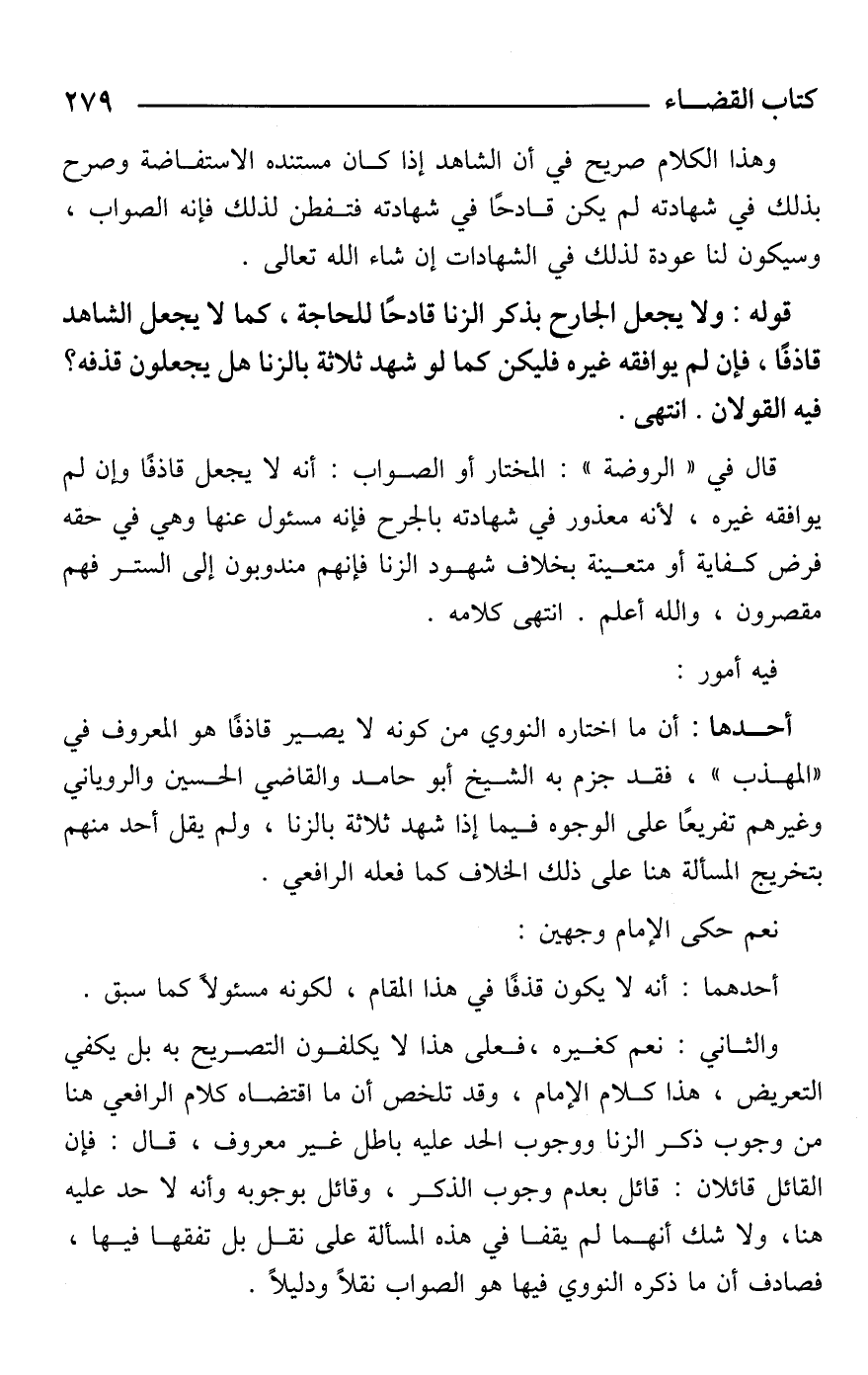 والثاني: نعم كغيره، فعلى هذا لا يكلفون التصريح به بل يكفي التعريض، هذا كلام الإمام، وقد تلخص أن ما اقتضاه كلام الرافعي هنا من وجوب ذكر الزنا ووجوب الحد عليه باطل غير معروف، قال: فإن القائل قائلان: قائل بعدم وجوب الذكر، وقائل بوجوبه وأنه لا حد عليه هنا، ولا شك أنهما لم يقفا في هذه المسألة على نقل بل تفقها فيها، فصادف أن ما ذكره النووي فيها هو الصواب نقلًا ودليلًا.