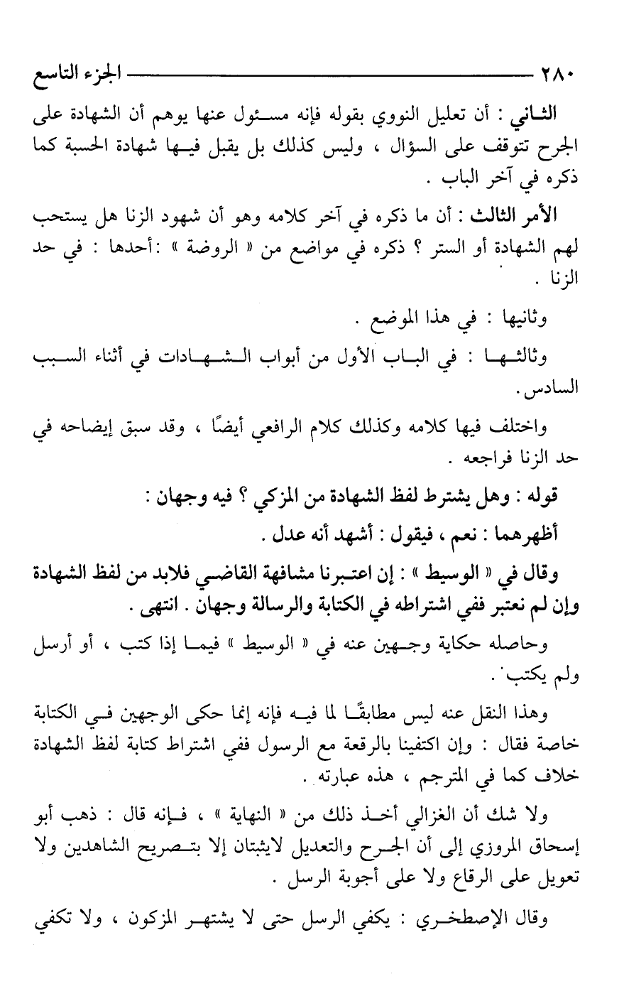 الثاني: أن تعليل النووي بقوله فإنه مسئول عنها يوهم أن الشهادة على الجرح تتوقف على السؤال، وليس كذلك بل يقبل فيها شهادة الحسبة كما ذكره في آخر الباب.