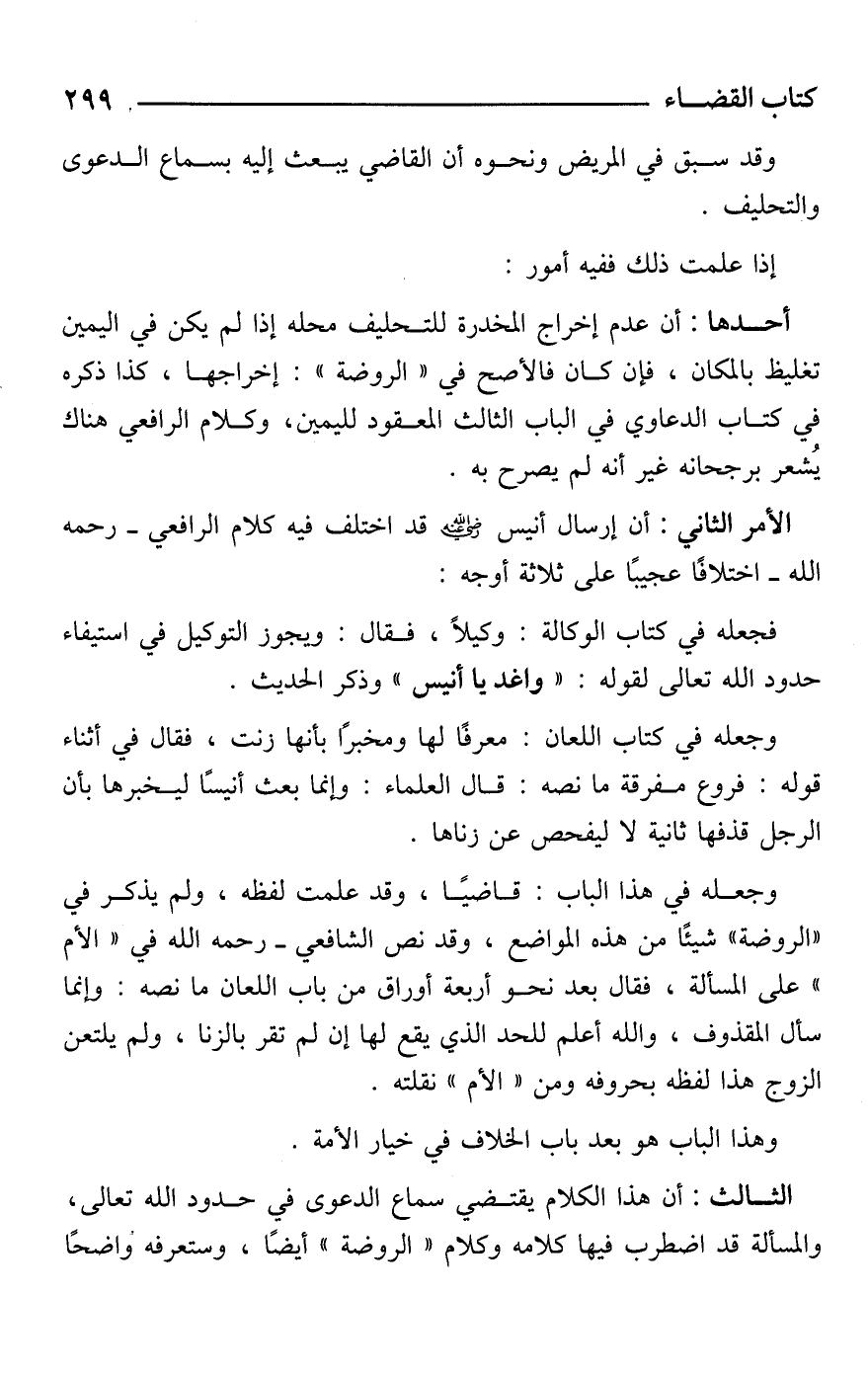 وجعله في هذا الباب: قاضيًا، وقد علمت لفظه، ولم يذكر في "الروضة" شيئًا من هذه المواضع، وقد نص الشافعي -رحمه الله- في "الأم" على المسألة، فقال بعد نحو أربعة أوراق من باب اللعان ما نصه: وإنما سأل المقذوف، والله أعلم للحد الذي يقع لها إن لم تقر بالزنا، ولم يلتعن الزوج هذا لفظه بحروفه ومن "الأم" نقلته.