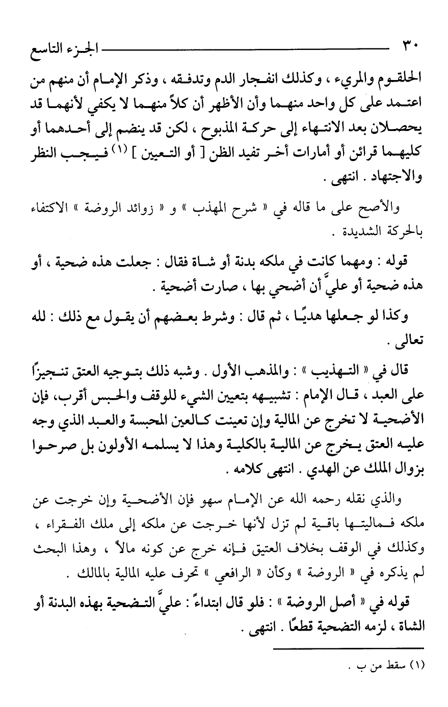 والذي نقله -رحمه الله- عن الإمام سهو فإن الأضحية وإن خرجت عن ملكه فماليتها باقية لم تزل لأنها خرجت عن ملكه إلى ملك الفقراء، وكذلك في الوقف بخلاف العتيق فإنه خرج عن كونه مالًا، وهذا البحث لم يذكره في "الروضة" وكأن "الرافعي" تحرف عليه المالية بالمالك.