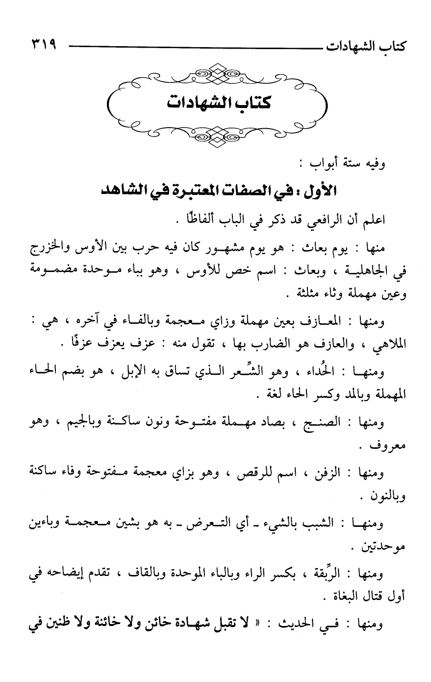 الباب الأول: في الصفات المعتبرة في الشاهد