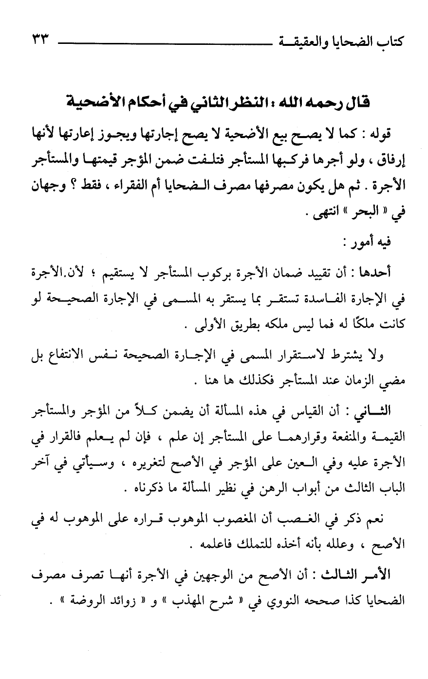 قال -رحمه الله-: النظر الثاني في أحكام الأضحية