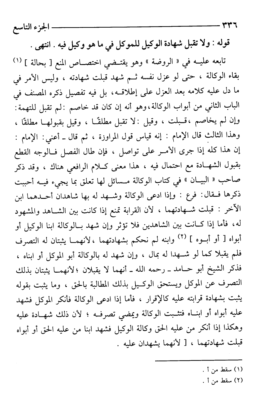تابعه عليه في "الروضة" وهو يقتضي اختصاص المنع [بحالة] (¬1) بقاء الوكالة، حتى لو عزل نفسه ثم شهد قبلت شهادته، وليس الأمر في ما دل عليه كلامه بعد العزل على إطلاقه، بل فيه تفصيل ذكره المصنف في الباب الثاني من أبواب الوكالة، وهو أنه إن كان قد خاصم: لم تقبل للتهمة: وإن لم يخاصم، قبلت، وقيل: لا تقبل مطلقًا، وقيل بقبولها مطلقًا، وهذا الثالث قال الإمام: إنه قياس قول المراوزة، ثم قال -أعني: الإمام: إن هذا كله إذا جرى الأمر على تواصل، فإن طال الفصل فالوجه القطع بقبول الشهادة مع احتمال فيه، هذا معنى كلام الرافعي هناك، وقد ذكر صاحب "البيان" في كتاب الوكالة مسائل لها تعلق بما يجيء فيه أحببت ذكرها فقال: فرع: وإذا ادعى الوكالة وشهد له بها شاهدان أحدهما ابن الآخر: قبلت شهادتهما، لأن القرابة تمنع إذا كانت بين الشاهد والمشهود له، فأما إذا كانت بين الشاهدين فلا تؤثر وإن شهد بالوكالة ابنا الوكيل أو أبواه [أو أبوه] (¬2) وابنه لم نحكم بشهادتهما، لأنهما يثبتان له التصرف فلم يقبلا كما لو شهدا له بمال، وإن شهد له بالوكالة أبو الموكل أو ابناه، فذكر الشيخ أبو حامد -رحمه الله- أنهما لا يقبلان؛ لأنهما يثبتان بذلك التصرف عن الموكل ويستحق الوكيل بذلك المطالبة بالحق، وما يثبت بقوله يثبت بشهادة قرابته عليه كالإقرار، فأما إذا ادعى الوكالة فأنكر الموكل فشهد عليه أبواه أو ابناه فتثبت الوكالة ويمضي تصرفه؛ لأن ذلك شهادة عليه وهكذا إذا أنكر من عليه الحق وكالة الوكيل فشهد ابنا من عليه الحق أو أبواه قبلت شهادتهما، [لأنهما يشهدان عليه.