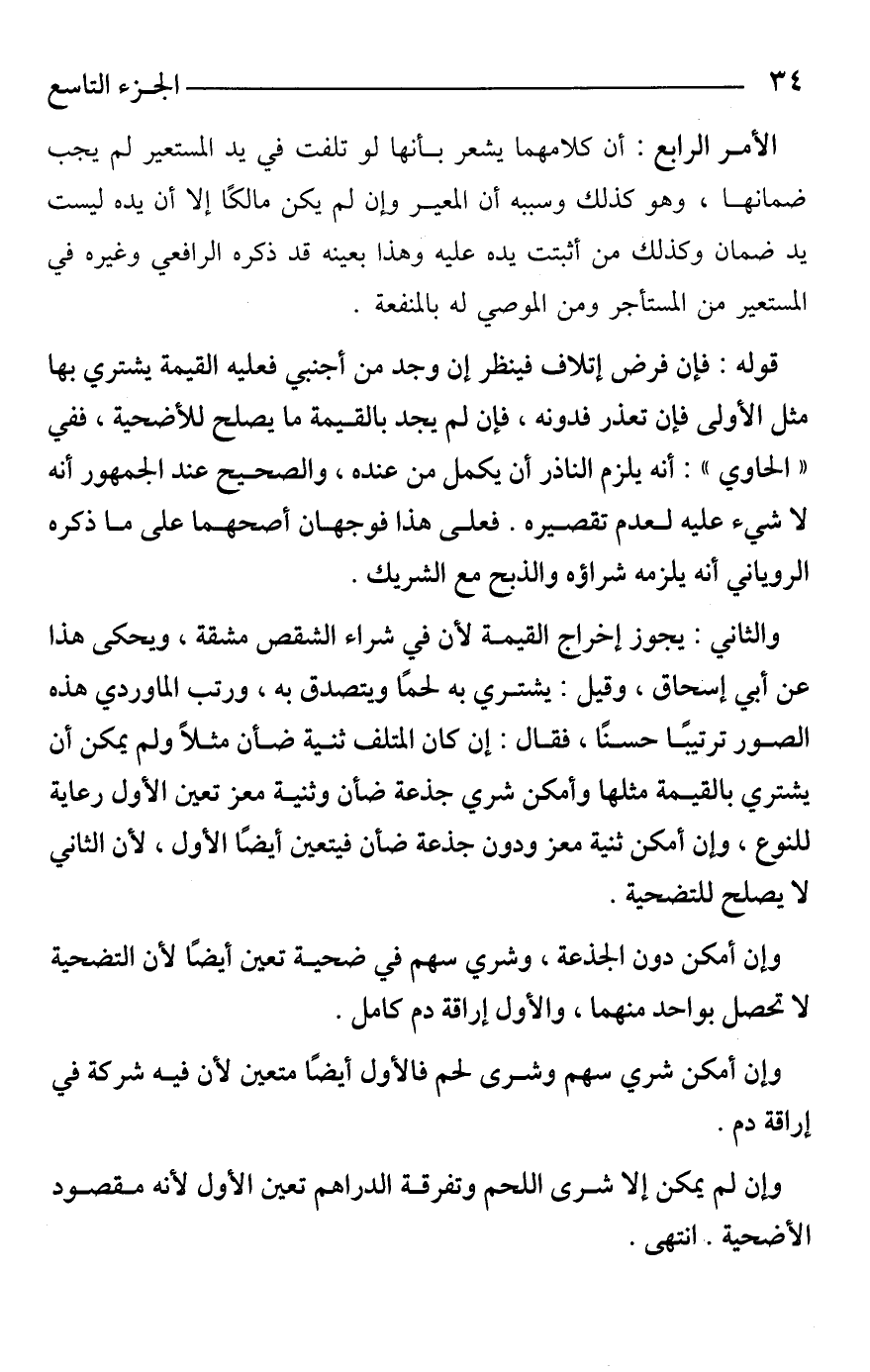 والثاني: يجوز إخراج القيمة لأن في شراء الشقص مشقة، ويحكى هذا عن أبي إسحاق، وقيل: يشتري به لحمًا ويتصدق به، ورتب الماوردي هذه الصور ترتيبًا حسنًا، فقال: إن كان المتلف ثنية ضأن مثلًا ولم يمكن أن يشتري بالقيمة مثلها وأمكن شري جذعة ضأن وثنية معز تعين الأول رعاية للنوع، وإن أمكن ثنية معز ودون جذعة ضأن فيتعين أيضًا الأول، لأن الثاني لا يصلح للتضحية.