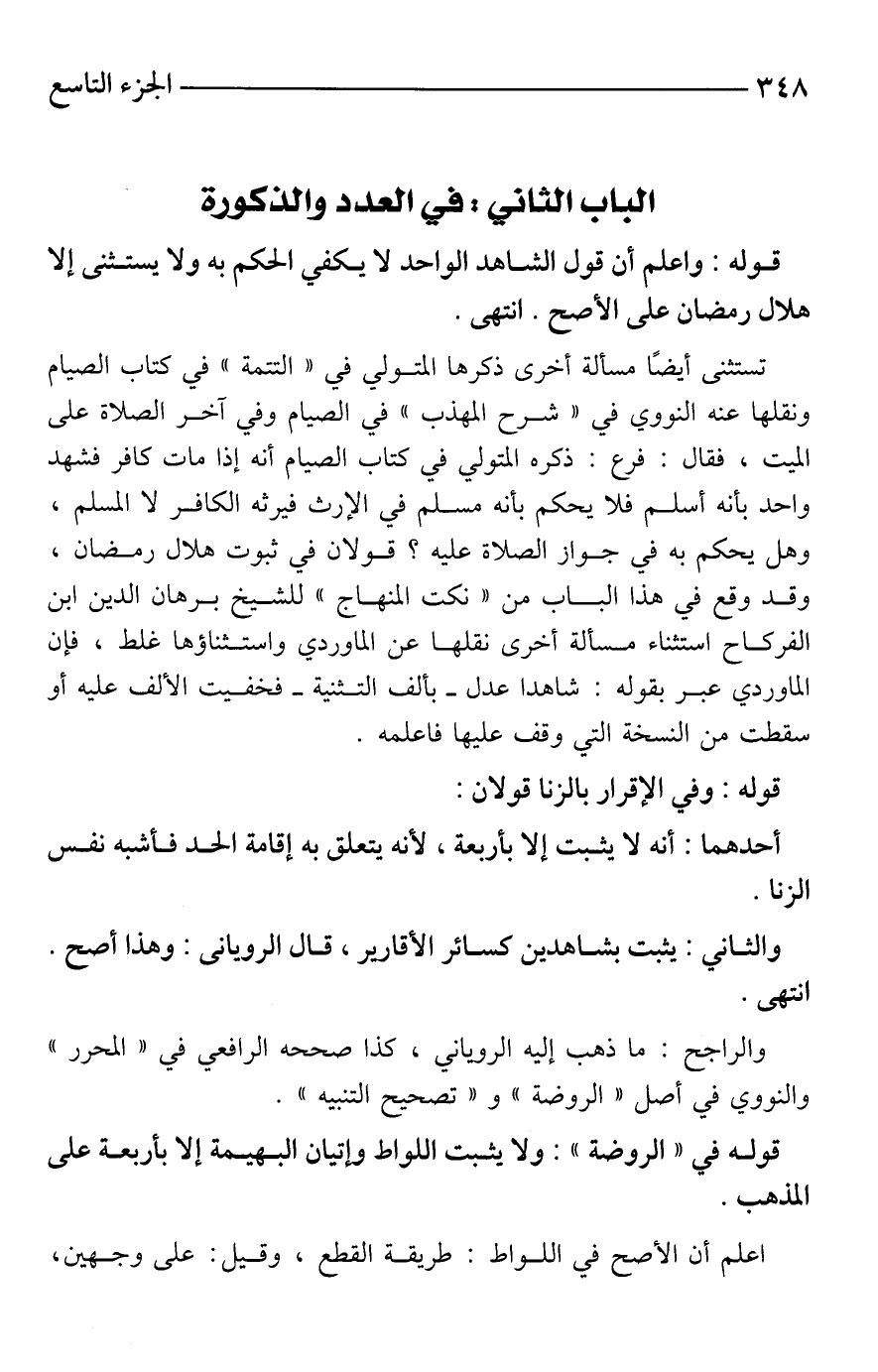 تستثنى أيضًا مسألة أخرى ذكرها المتولي في "التتمة" في كتاب الصيام ونقلها عنه النووي في "شرح المهذب" في الصيام وفي آخر الصلاة على الميت، فقال: فرع: ذكره المتولي في كتاب الصيام أنه إذا مات كافر فشهد واحد بأنه أسلم فلا يحكم بأنه مسلم في الإرث فيرثه الكافر لا المسلم، وهل يحكم به في جواز الصلاة عليه؟ قولان في ثبوت هلال رمضان، وقد وقع في هذا الباب من "نكت المنهاج" للشيخ برهان الدين ابن الفركاح استثناء مسألة أخرى نقلها عن الماوردي واستثناؤها غلط، فإن الماوردي عبر بقوله: شاهدا عدل -بألف التثنية- فخفيت الألف عليه أو سقطت من النسخة التي وقف عليها فاعلمه.