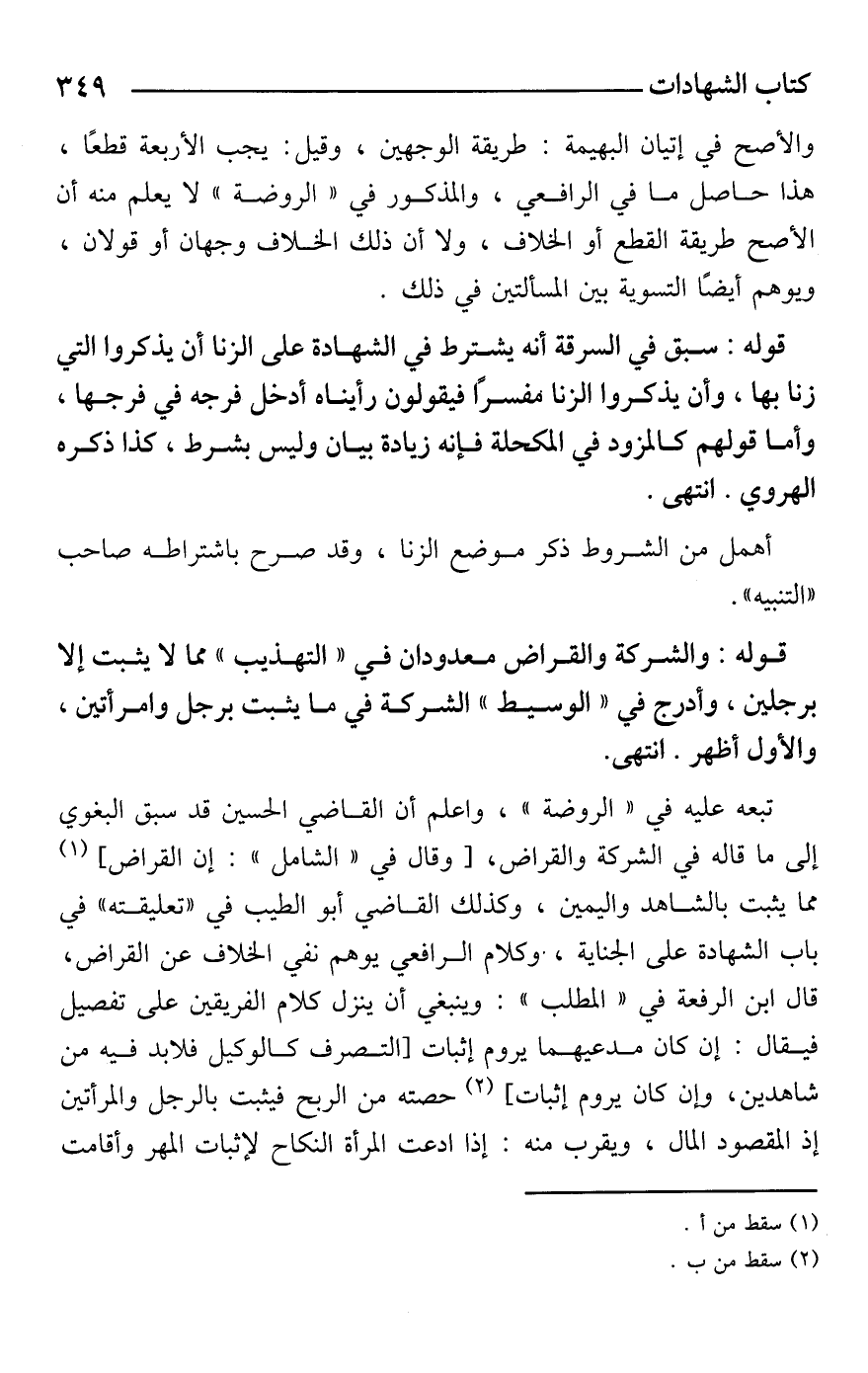 قوله: والشركة والقراض معدودان في "التهذيب" مما لا يثبت إلا برجلين، وأدرج في "الوسيط" الشركة في ما يثبت برجل وامرأتين، والأول أظهر. انتهى.