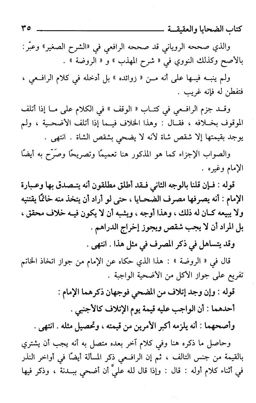 وقد جزم الرافعي في كتاب "الوقف" في الكلام على ما إذا أتلف الموقوف بخلافه، فقال: وهذا الخلاف فيما إذا أتلف الأضحية، ولم يوجد بقيمتها إلا شقص شاة لأنه لا يضحي بشقص الشاة. انتهى.