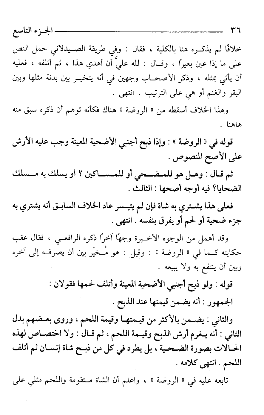 والثاني: يضمن بالأكثر من قيمتها وقيمة اللحم، وروى بعضهم بدل الثاني: أنه يغرم أرش الذبح وقيمة اللحم، ثم قال: ولا اختصاص لهذه الحالات بصورة الضحية، بل يطرد في كل من ذبح شاة إنسان ثم أتلف اللحم. انتهى كلامه.