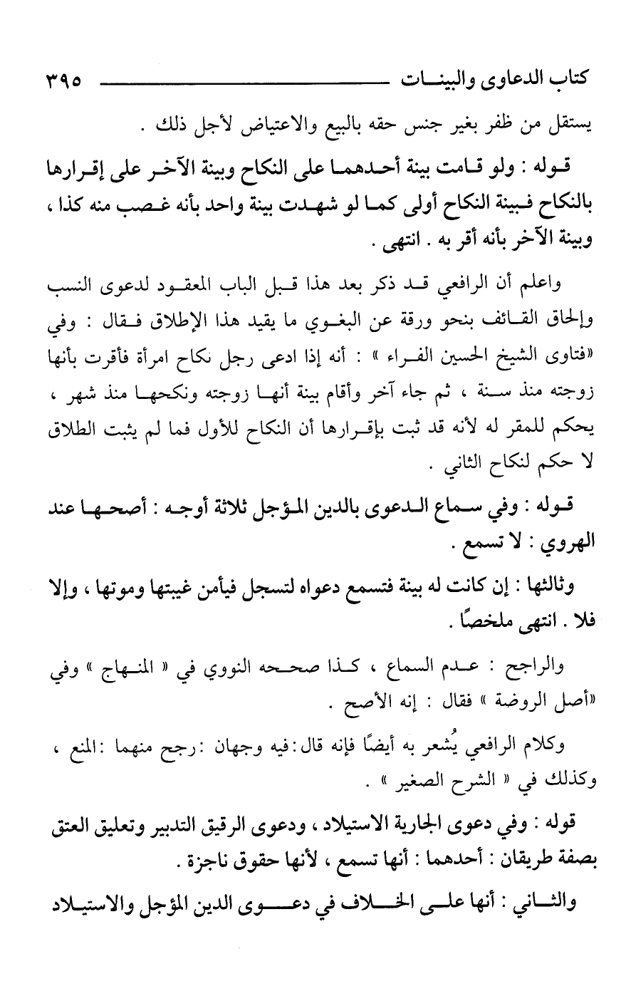 واعلم أن الرافعي قد ذكر بعد هذا قبل الباب المعقود لدعوى النسب وإلحاق القائف بنحو ورقة عن البغوي ما يقيد هذا الإطلاق فقال: وفي "فتاوى الشيخ الحسين الفراء": أنه إذا ادعى رجل نكاح امرأة فأقرت بأنها زوجته منذ سنة، ثم جاء آخر وأقام بينة أنها زوجته ونكحها منذ شهر، يحكم للمقر له لأنه قد ثبت بإقرارها أن النكاح للأول فما لم يثبت الطلاق لا حكم لنكاح الثاني.