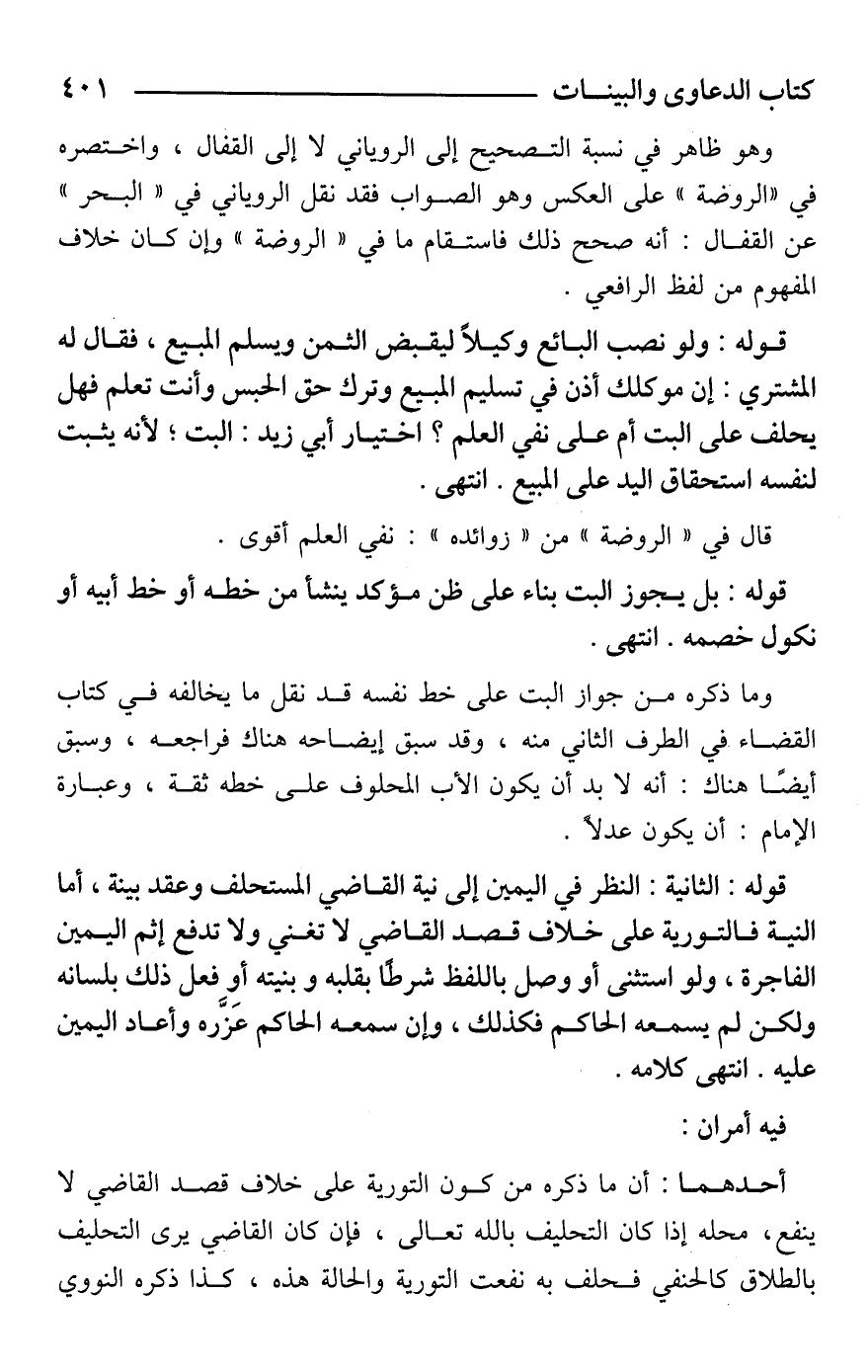 قوله: الثانية: النظر في اليمين إلى نية القاضي المستحلف وعقد بينة، أما النية فالتورية على خلاف قصد القاضي لا تغني ولا تدفع إثم اليمين الفاجرة، ولو استثنى أو وصل باللفظ شرطًا بقلبه وبنيته أو فعل ذلك بلسانه ولكن لم يسمعه الحاكم فكذلك، وإن سمعه الحاكم عَزَّره وأعاد اليمين عليه. انتهى كلامه.