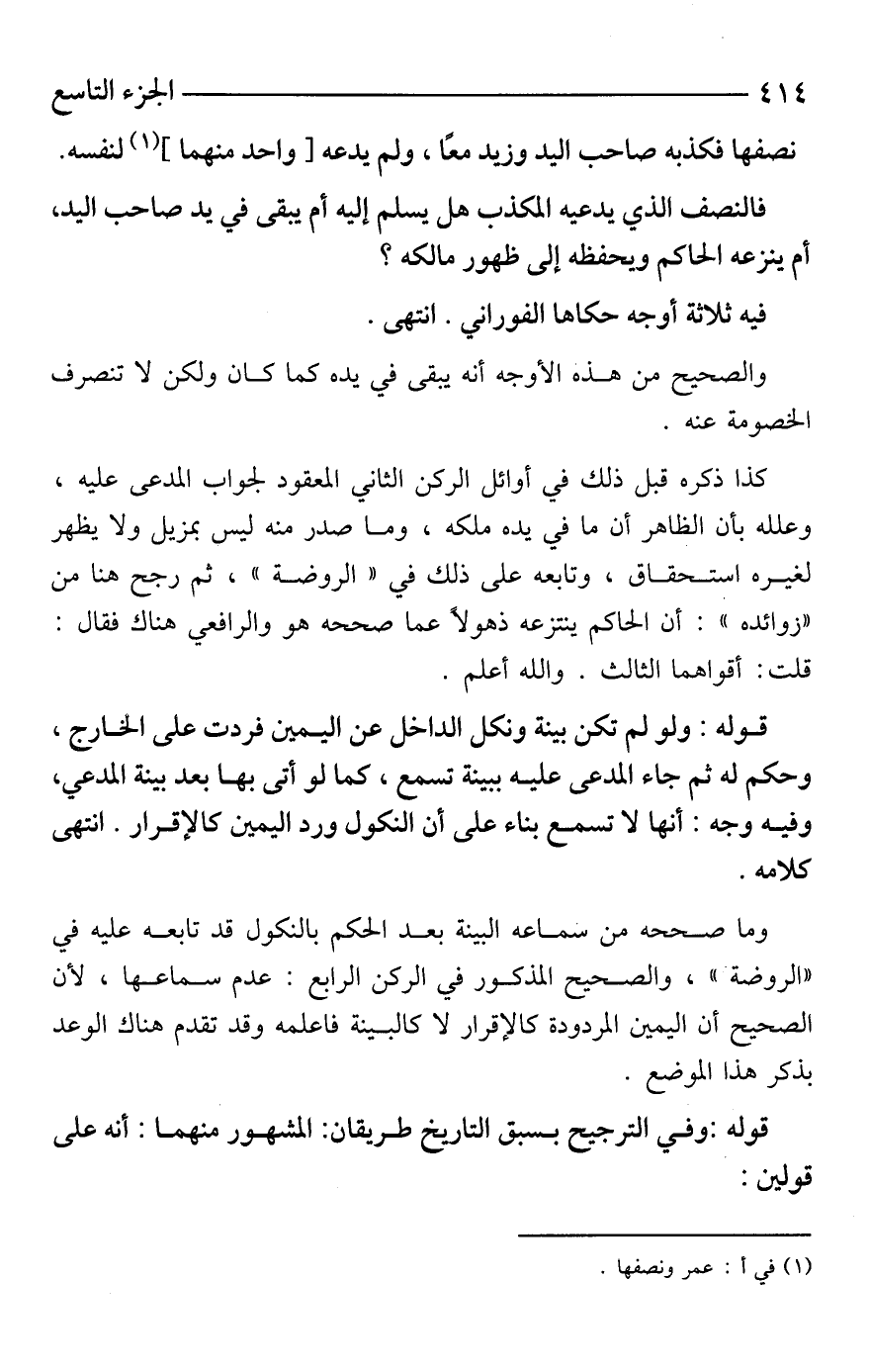 نصفها فكذبه صاحب اليد وزيد معًا، ولم يدعه [واحد منهما] (¬1) لنفسه.