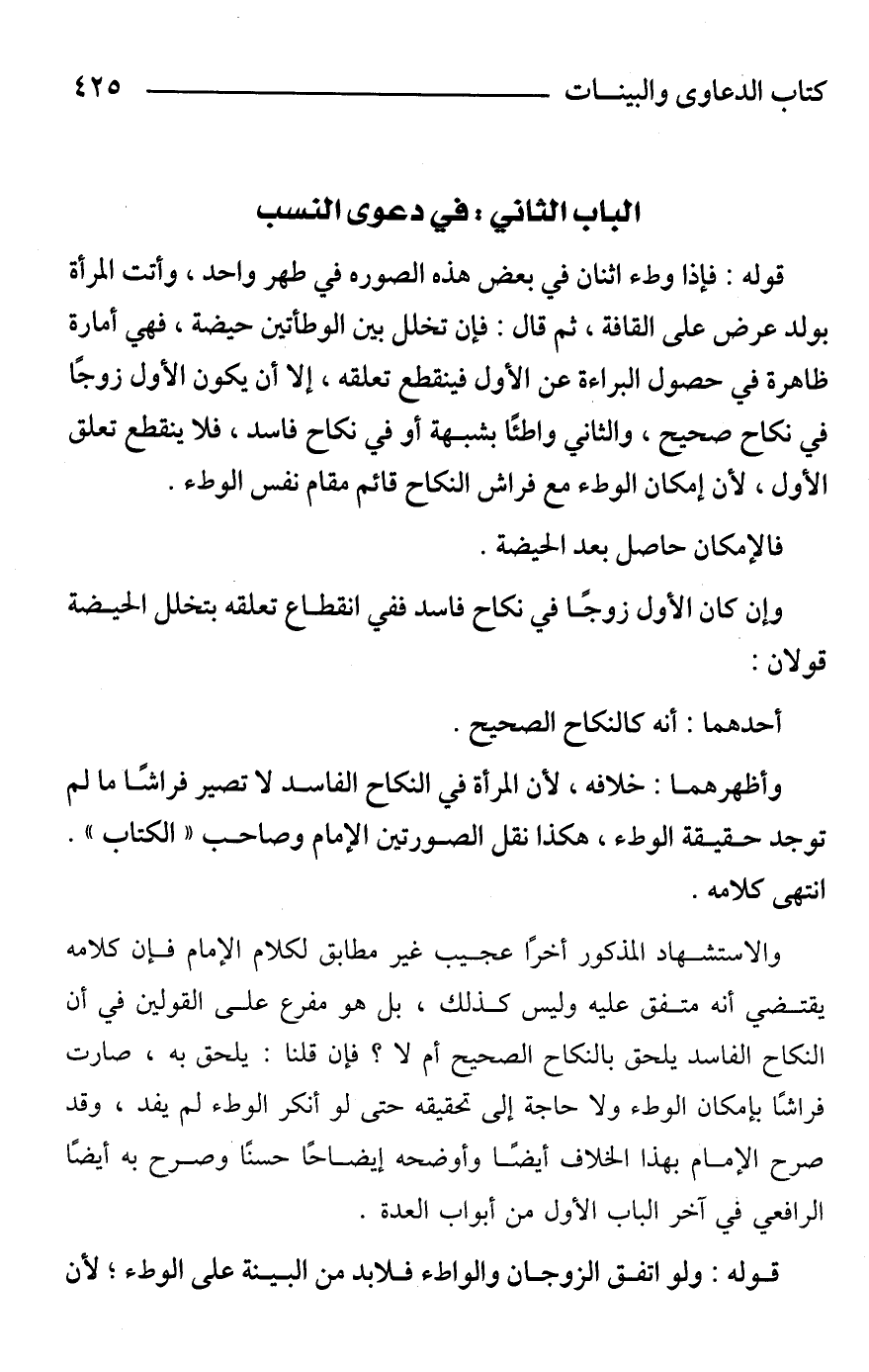 قوله: فإذا وطء اثنان في بعض هذه الصوره في طهر واحد، وأتت المرأة بولد عرض على القافة، ثم قال: فإن تخلل بين الوطأتين حيضة، فهي أمارة ظاهرة في حصول البراءة عن الأول فينقطع تعلقه، إلا أن يكون الأول زوجًا في نكاح صحيح، والثاني واطئًا بشبهة أو في نكاح فاسد، فلا ينقطع تعلق الأول، لأن إمكان الوطء مع فراش النكاح قائم مقام نفس الوطء.