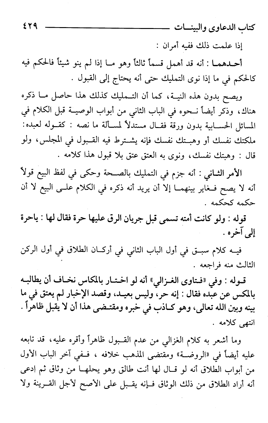 ويصح بدون هذه النية، كما أن التمليك كذلك هذا حاصل ما ذكره هناك، وذكر أيضًا نحوه في الباب الثاني من أبواب الوصية قبل الكلام في المسائل الحسابية بدون ورقة فقال مستدلًا لمسألة ما نصه: كقوله لعبده: ملكتك نفسك أو وهبتك نفسك فإنه يشترط فيه القبول في المجلس، ولو قال: وهبتك نفسك، ونوى به العتق عتق بلا قبول هذا كلامه.