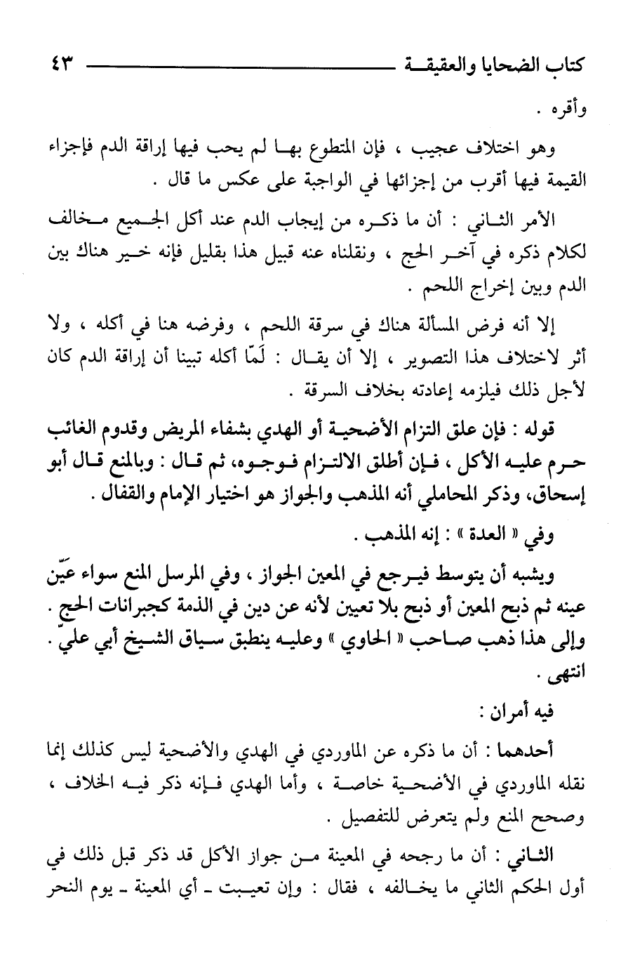 ويشبه أن يتوسط فيرجع في المعين الجواز، وفي المرسل المنع سواء عَيّن عينه ثم ذبح المعين أو ذبح بلا تعيين لأنه عن دين في الذمة كجبرانات الحج. وإلى هذا ذهب صاحب "الحاوي" وعليه ينطبق سياق الشيخ أبي عليّ. انتهى.