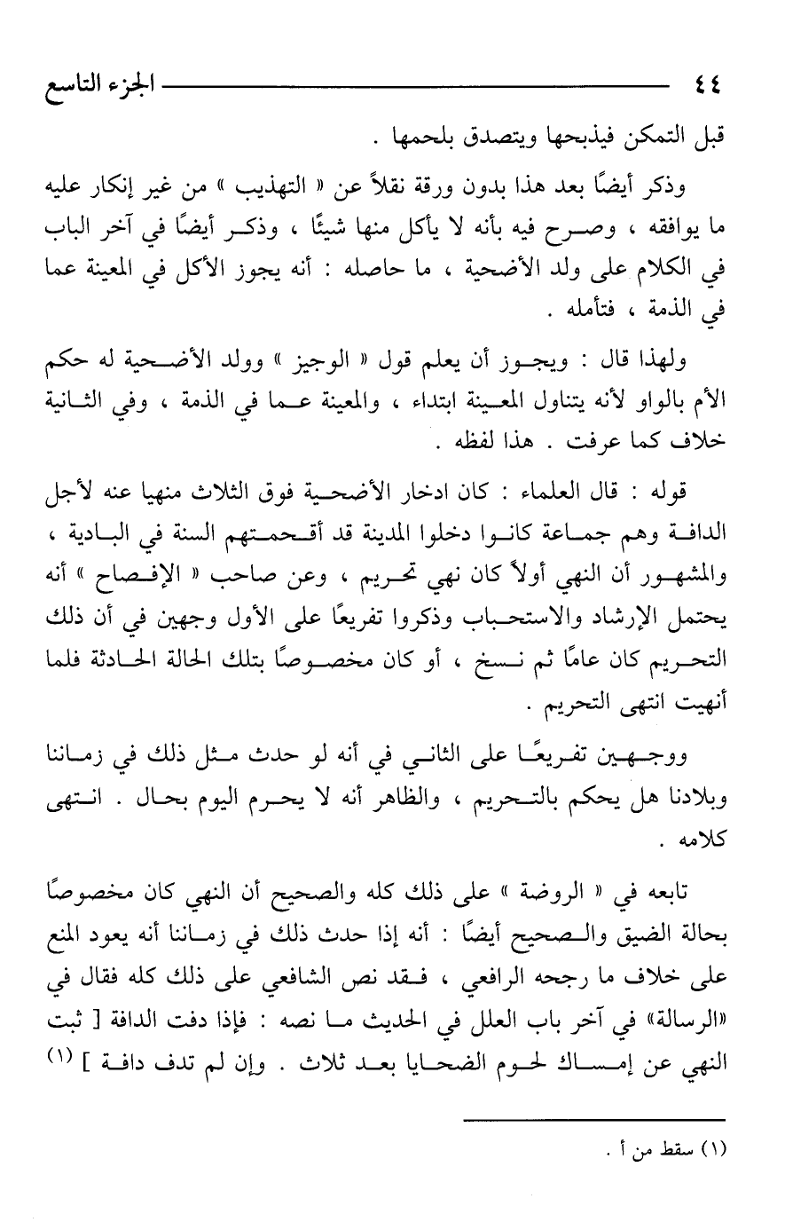 وذكر أيضًا بعد هذا بدون ورقة نقلًا عن "التهذيب" من غير إنكار عليه ما يوافقه، وصرح فيه بأنه لا يأكل منها شيئًا، وذكر أيضًا في آخر الباب في الكلام على ولد الأضحية، ما حاصله: أنه يجوز الأكل في المعينة عما في الذمة، فتأمله.