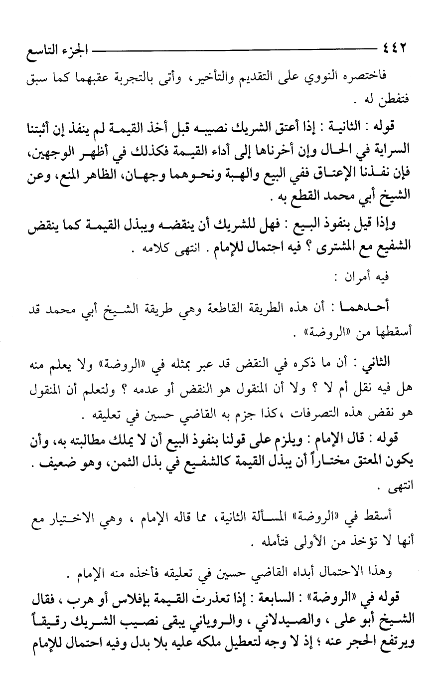 وإذا قيل بنفوذ البيع: فهل للشريك أن ينقضه ويبذل القيمة كما ينقض الشفيع مع المشتري؟ فيه احتمال للإمام. انتهى كلامه.