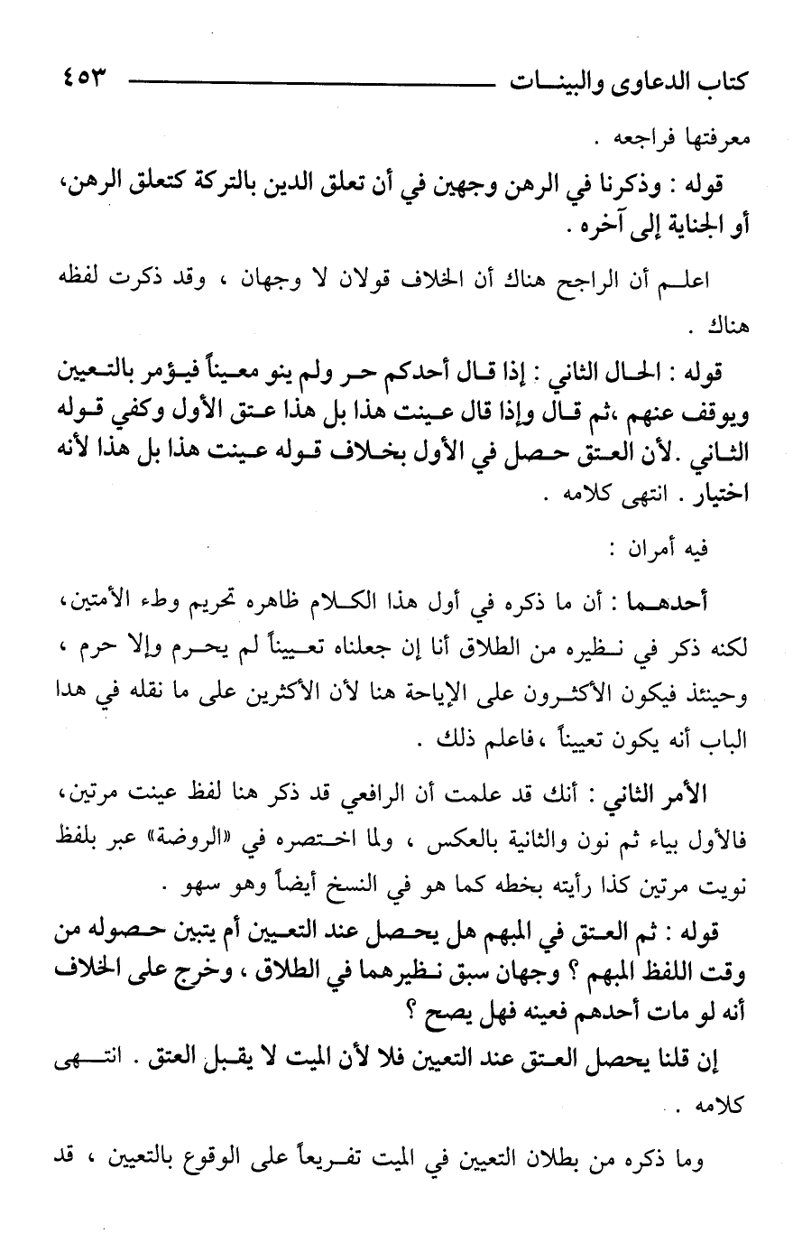 قوله: الحال الثاني: إذا قال أحدكم حر ولم ينو معينًا فيؤمر بالتعيين ويوقف عنهم، ثم قال وإذا قال عينت هذا بل هذا عتق الأول وكفي قوله الثاني. لأن العتق حصل في الأول بخلاف قوله عينت هذا بل هذا لأنه اختيار. انتهى كلامه.