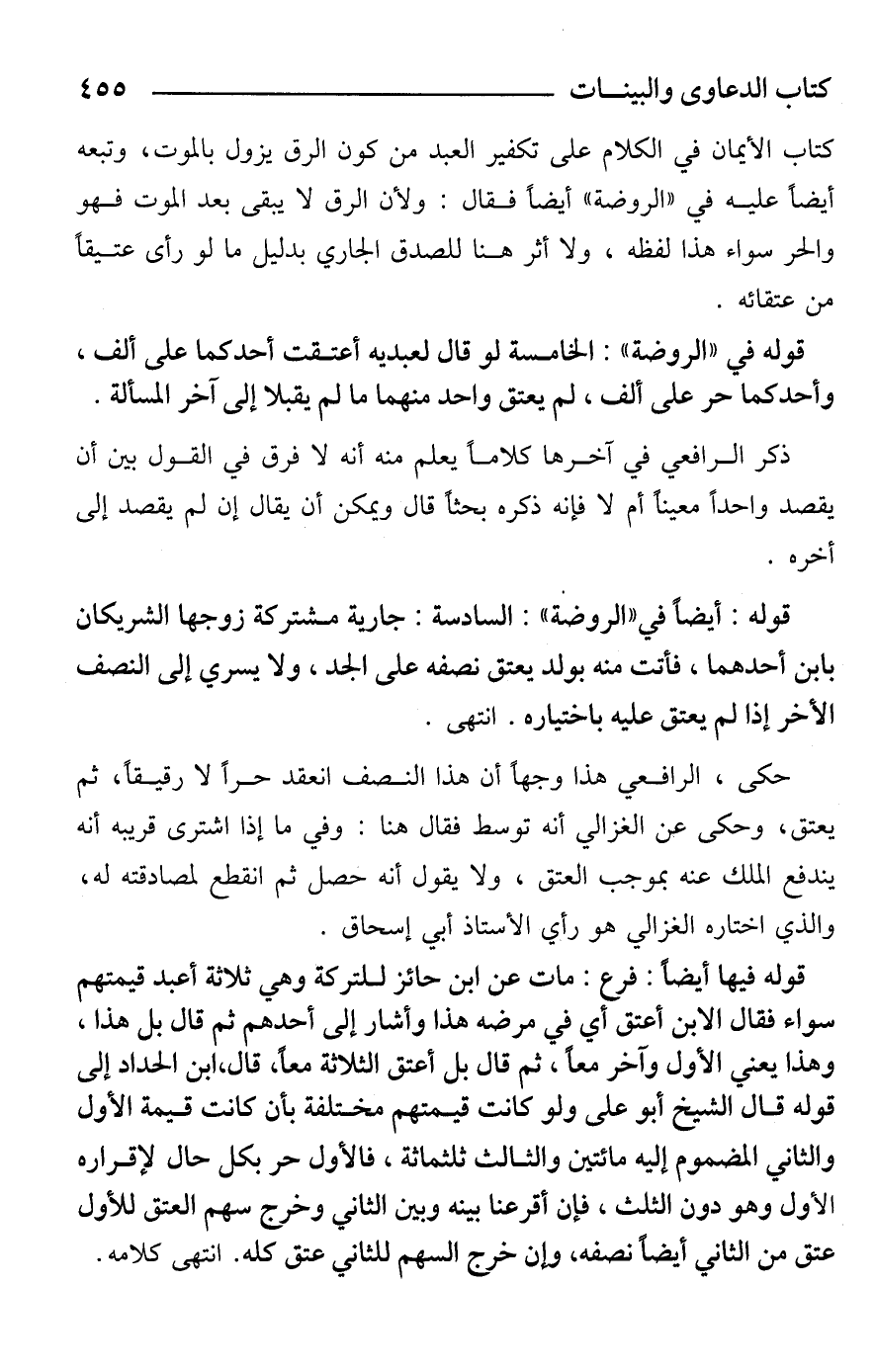 كتاب الأيمان في الكلام على تكفير العبد من كون الرق يزول بالموت، وتبعه أيضًا عليه في "الروضة" أيضًا فقال: ولأن الرق لا يبقى بعد الموت فهو والحر سواء هذا لفظه، ولا أثر هنا للصدق الجاري بدليل ما لو رأى عتيقًا من عتقائه.