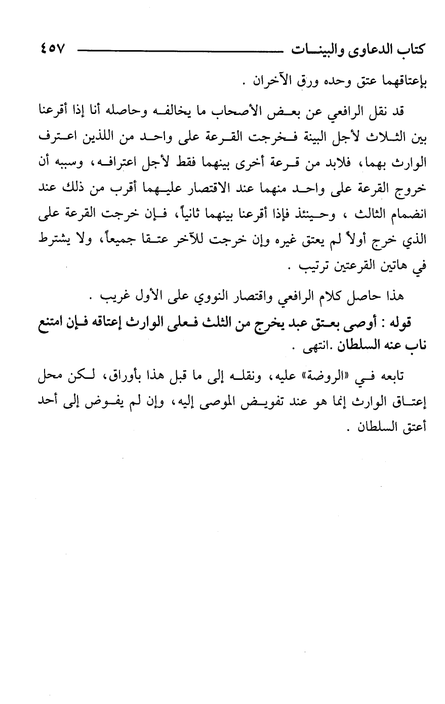 قد نقل الرافعي عن بعض الأصحاب ما يخالفه وحاصله أنا إذا أقرعنا بين الثلاث لأجل البينة فخرجت القرعة على واحد من اللذين اعترف الوارث بهما، فلابد من قرعة أخرى بينهما فقط لأجل اعترافه، وسببه أن خروج القرعة على واحد منهما عند الاقتصار عليهما أقرب من ذلك عند انضمام الثالث، وحينئذ فإذا أقرعنا بينهما ثانيًا، فإن خرجت القرعة على الذي خرج أولًا لم يعتق غيره وإن خرجت للآخر عتقا جميعًا، ولا يشترط في هاتين القرعتين ترتيب.