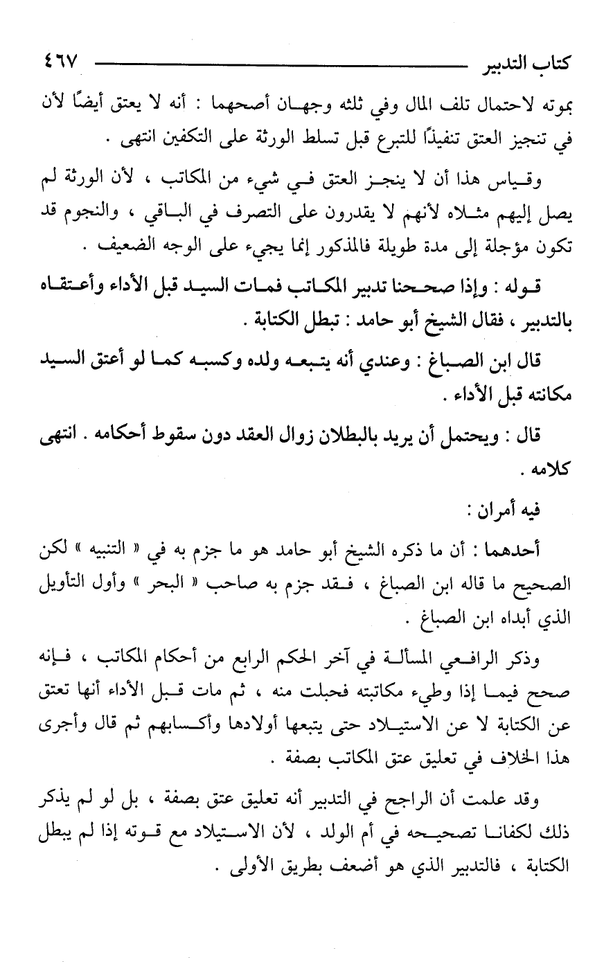 وقد علمت أن الراجح في التدبير أنه تعليق عتق بصفة، بل لو لم يذكر ذلك لكفانا تصحيحه في أم الولد، لأن الاستيلاد مع قوته إذا لم يبطل الكتابة، فالتدبير الذي هو أضعف بطريق الأولى.