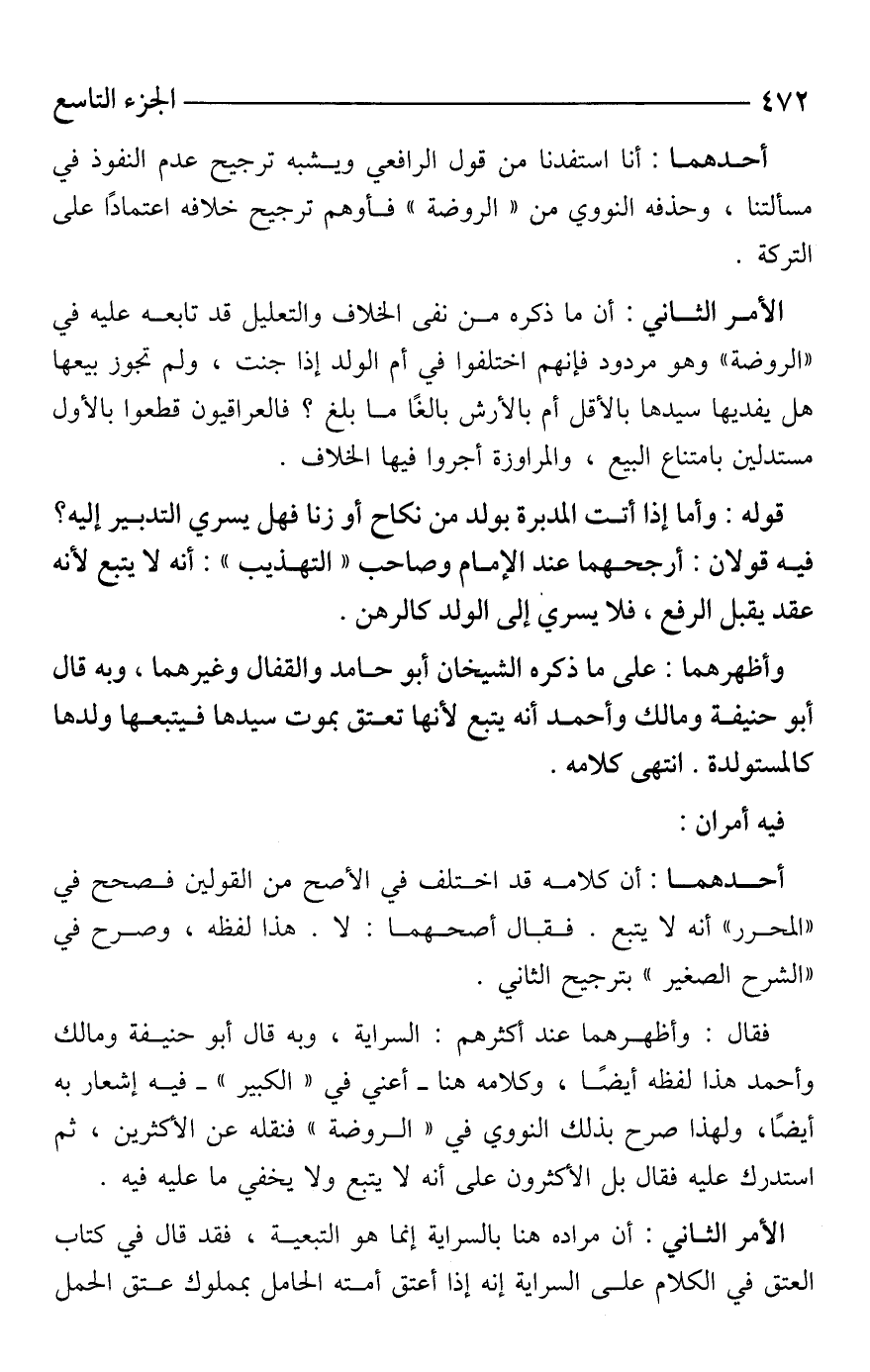 الأمر الثاني: أن مراده هنا بالسراية إنما هو التبعية، فقد قال في كتاب العتق في الكلام على السراية إنه إذا أعتق أمته الحامل بمملوك عتق الحمل