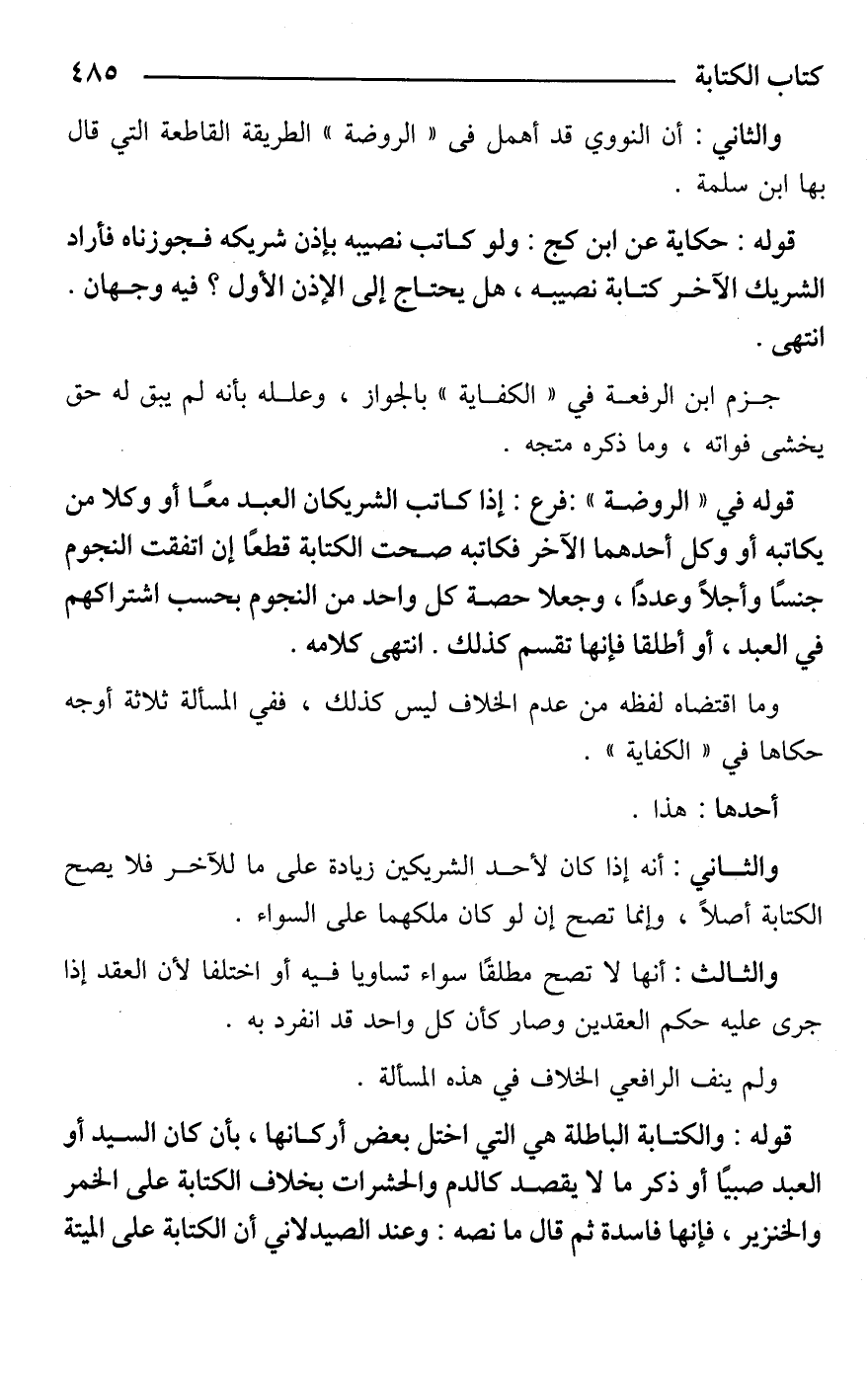 والثاني: أنه إذا كان لأحد الشريكين زيادة على ما للآخر فلا يصح الكتابة أصلًا، وإنما تصح إن لو كان ملكهما على السواء.