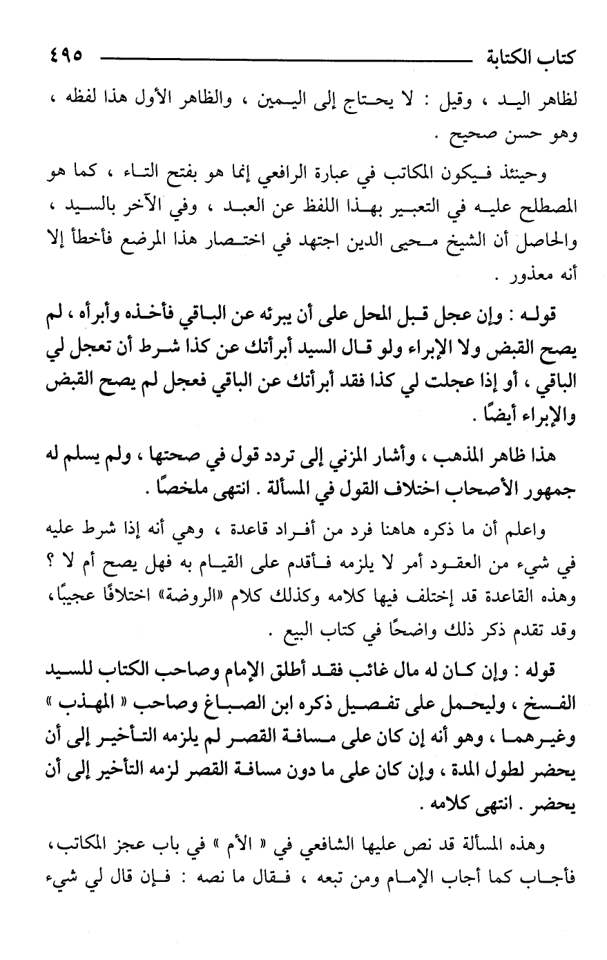 وحينئذ فيكون المكاتب في عبارة الرافعي إنما هو بفتح التاء، كما هو المصطلح عليه في التعبير بهذا اللفظ عن العبد، وفي الآخر بالسيد، والحاصل أن الشيخ محيى الدين اجتهد في اختصار هذا المرضع فأخطأ إلا أنه معذور.