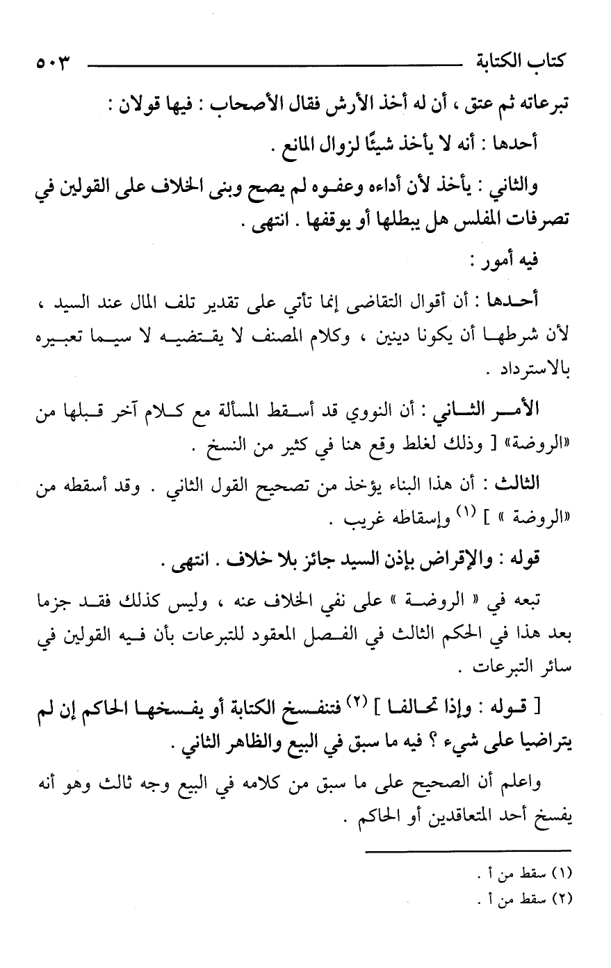 الأمر الثاني: أن النووي قد أسقط المسألة مع كلام آخر قبلها من "الروضة" [وذلك لغلط وقع هنا في كثير من النسخ.