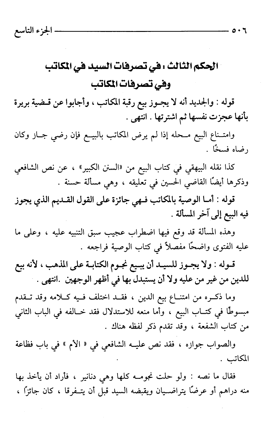 الحكم الثالث: في تصرفات السيد في المكاتب وفي تصرفات المكاتب