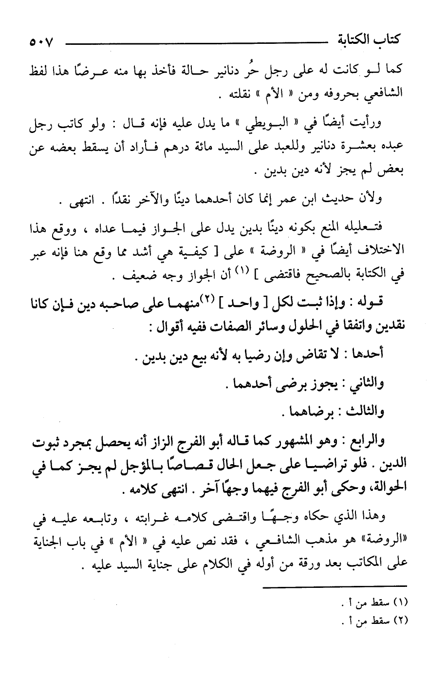 ورأيت أيضًا في "البويطي" ما يدل عليه فإنه قال: ولو كاتب رجل عبده بعشرة دنانير وللعبد على السيد مائة درهم فأراد أن يسقط بعضه عن بعض لم يجز لأنه دين بدين.