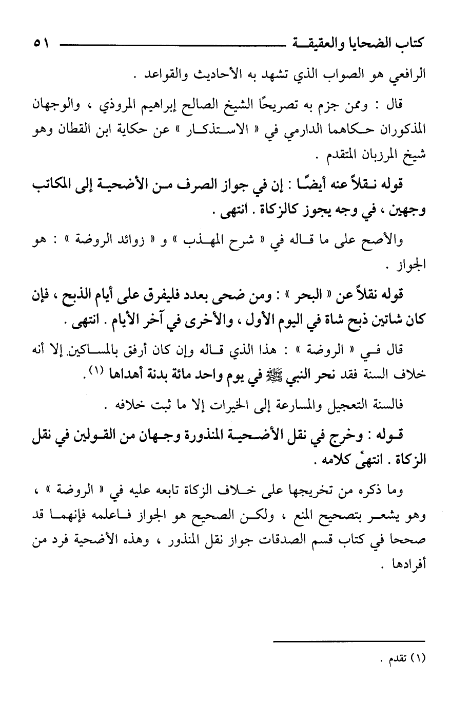 وما ذكره من تخريجها على خلاف الزكاة تابعه عليه في "الروضة"، وهو يشعر بتصحيح المنع، ولكن الصحيح هو الجواز فاعلمه فإنهما قد صححا في كتاب قسم الصدقات جواز نقل المنذور، وهذه الأضحية فرد من أفرادها.