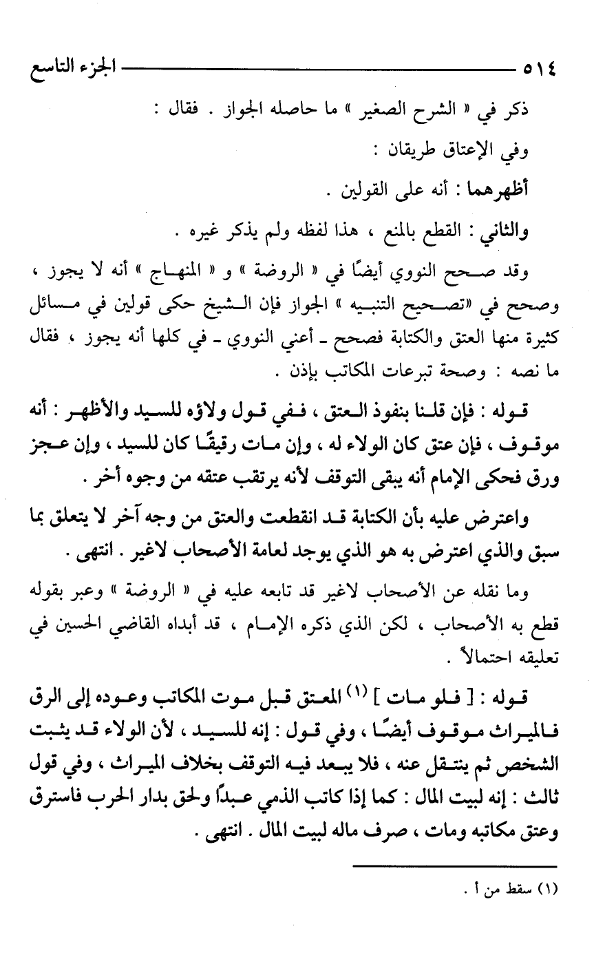 واعترض عليه بأن الكتابة قد انقطعت والعتق من وجه آخر لا يتعلق بما سبق والذي اعترض به هو الذي يوجد لعامة الأصحاب لا غير. انتهى.